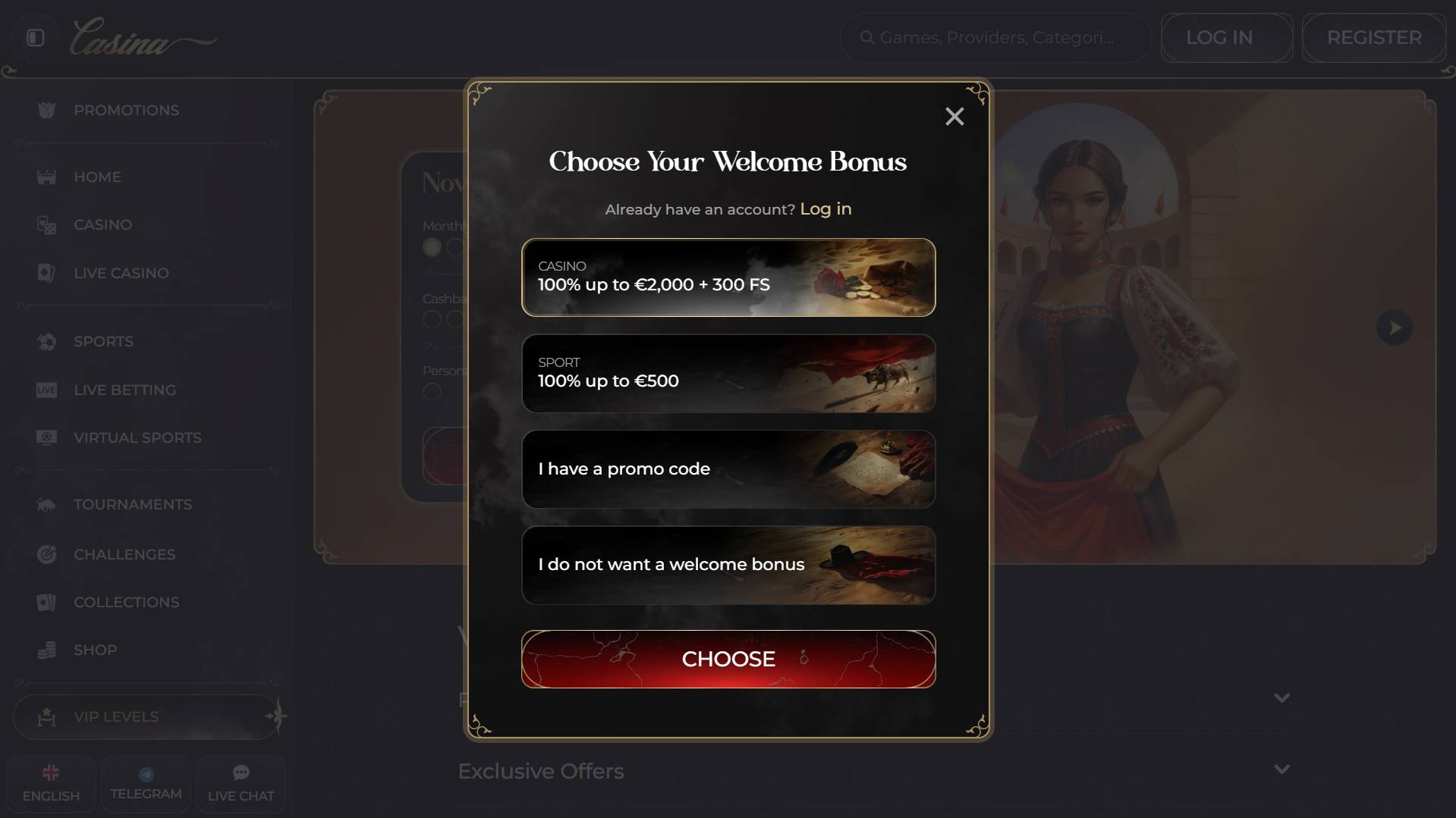 17. This promotion is not limited in time. Casina reserves the right to modify or terminate the promotion at its discretion without giving any prior notice.