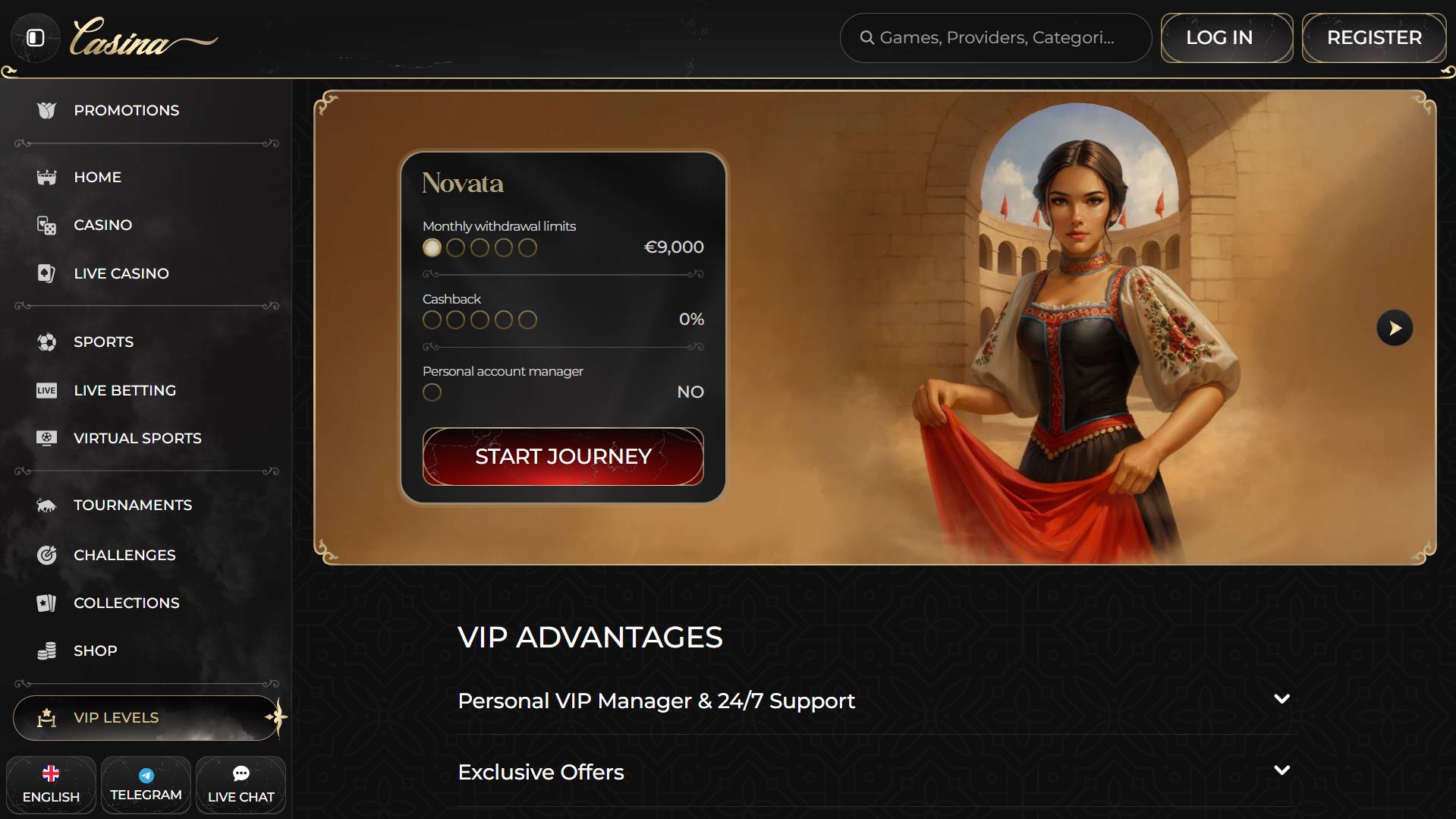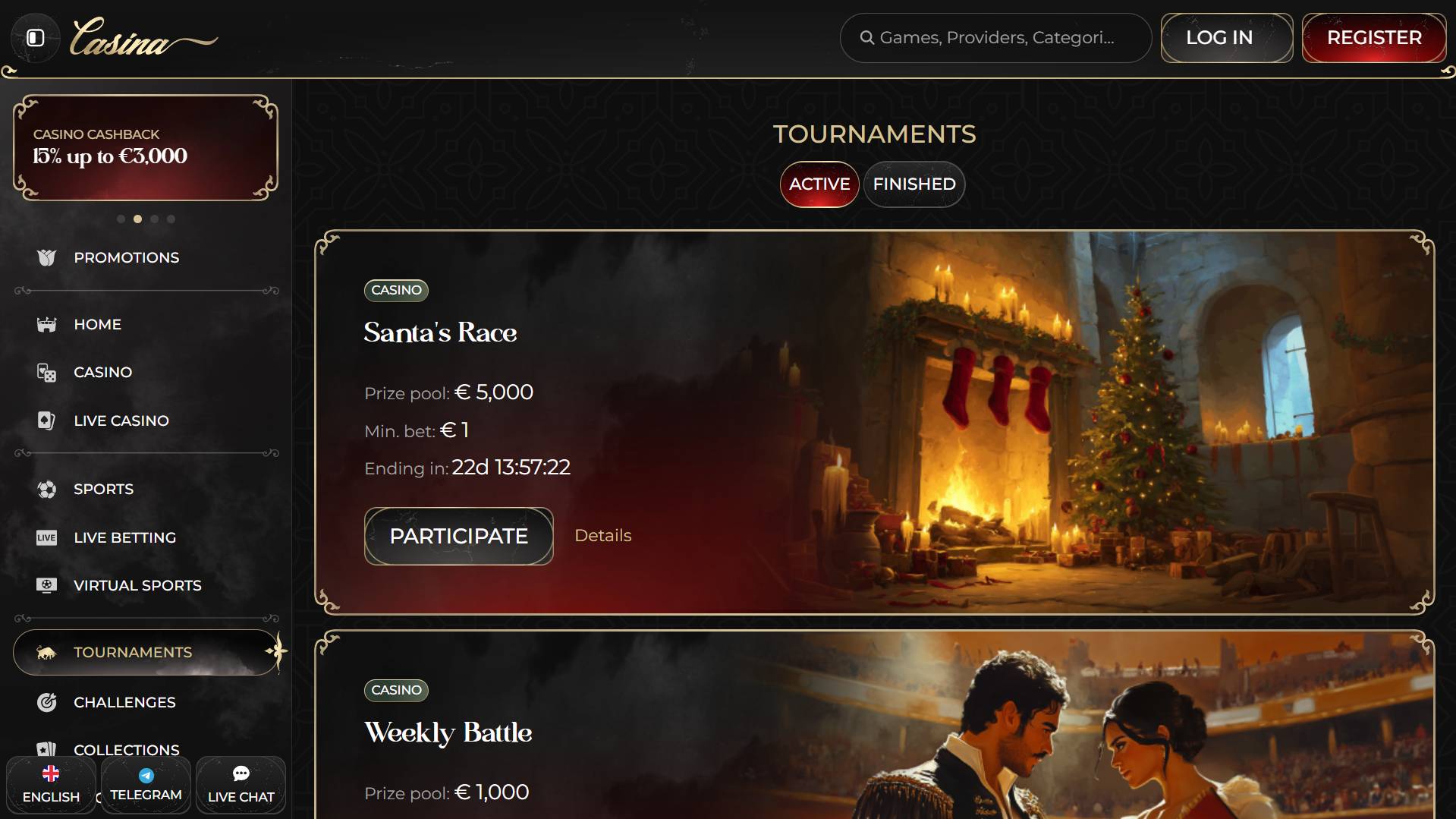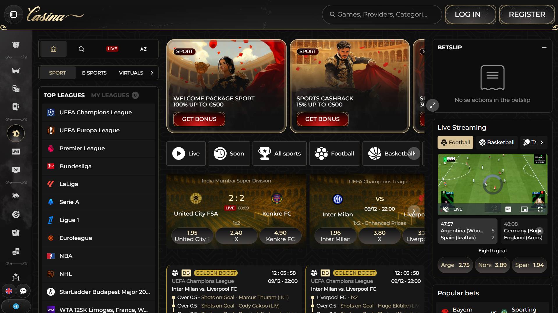 Casina brings a modern casino-sports hybrid with a flamenco styled layout and strong game lineup. The platform launched in 2025 under the ownership of 130Group N.V. and holds a Curacao license. Casino players receive access to more than 8100 slots and over 500 live dealer tables. Sports followers get live odds, streaming options and popular competitions ready for betting. The welcome package includes 100 percent up to 2000 euro plus 300 free spins with x35 wagering and x40 on the spins. Banking includes cards, ewallets and crypto. Monthly withdrawal limits start at 9000 euro for regular profiles.