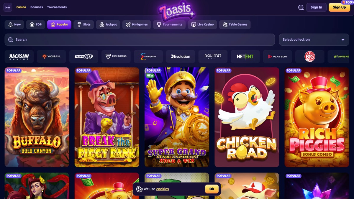 7oasis Casino boasts a diverse game selection, including approximately 1,000 slot titles from reputable providers like Hacksaw Gaming, Yggdrasil, Play’n GO, and Push Gaming. Additionally, gamers can enjoy a broad variety of table games such as blackjack, roulette, and baccarat. The casino also features a live dealer section, offering real-time gaming experiences with professional dealers.