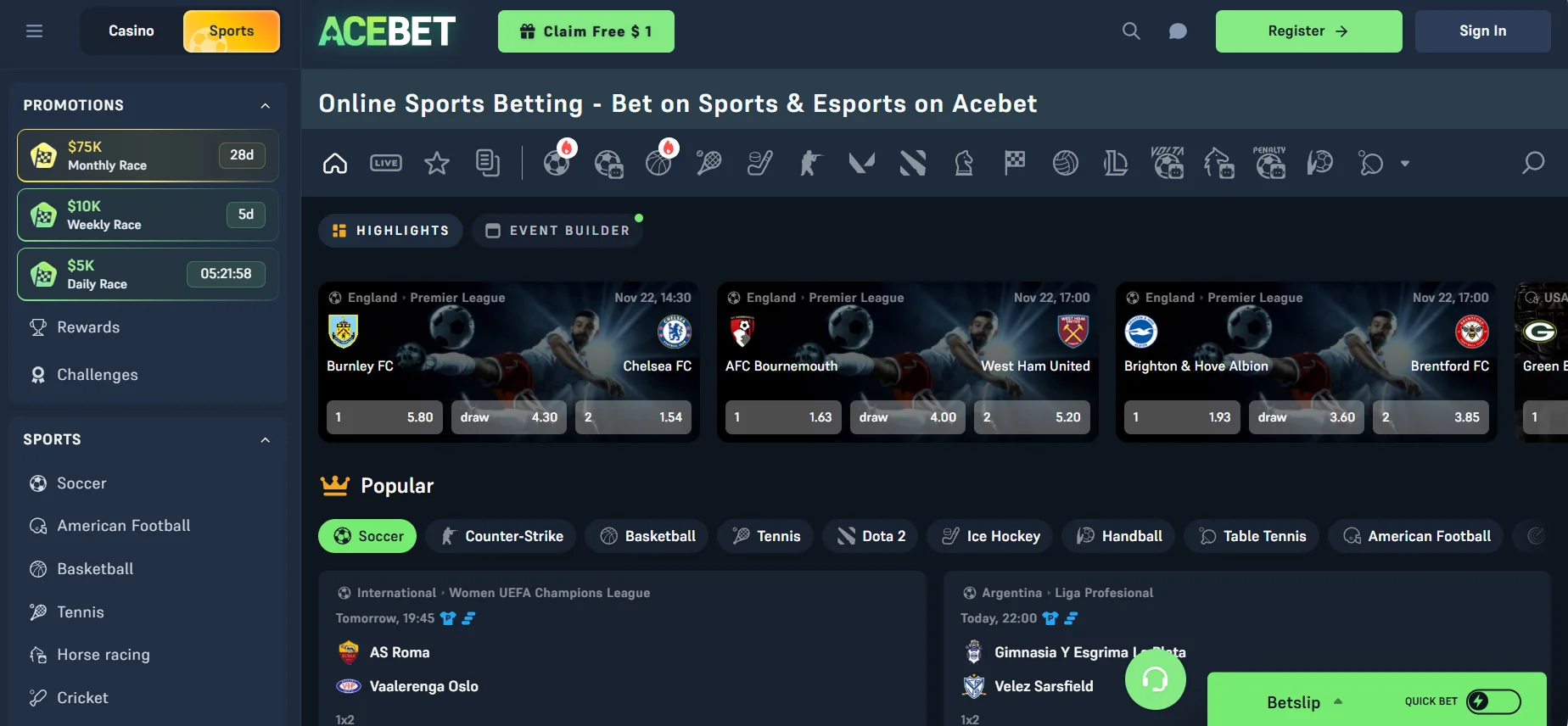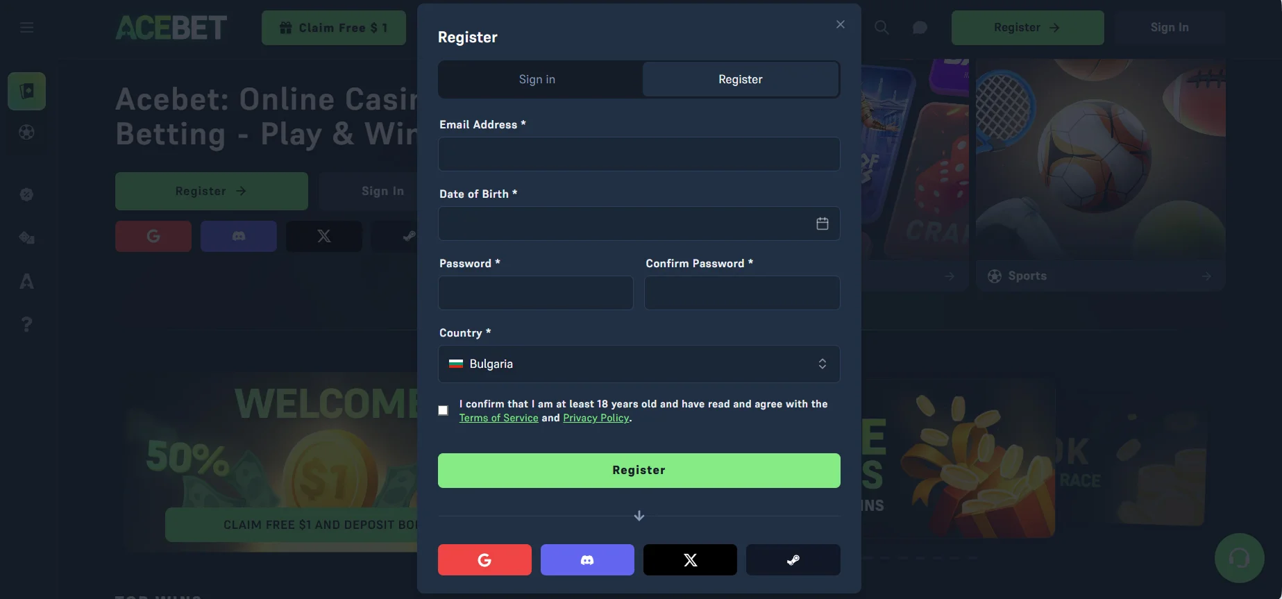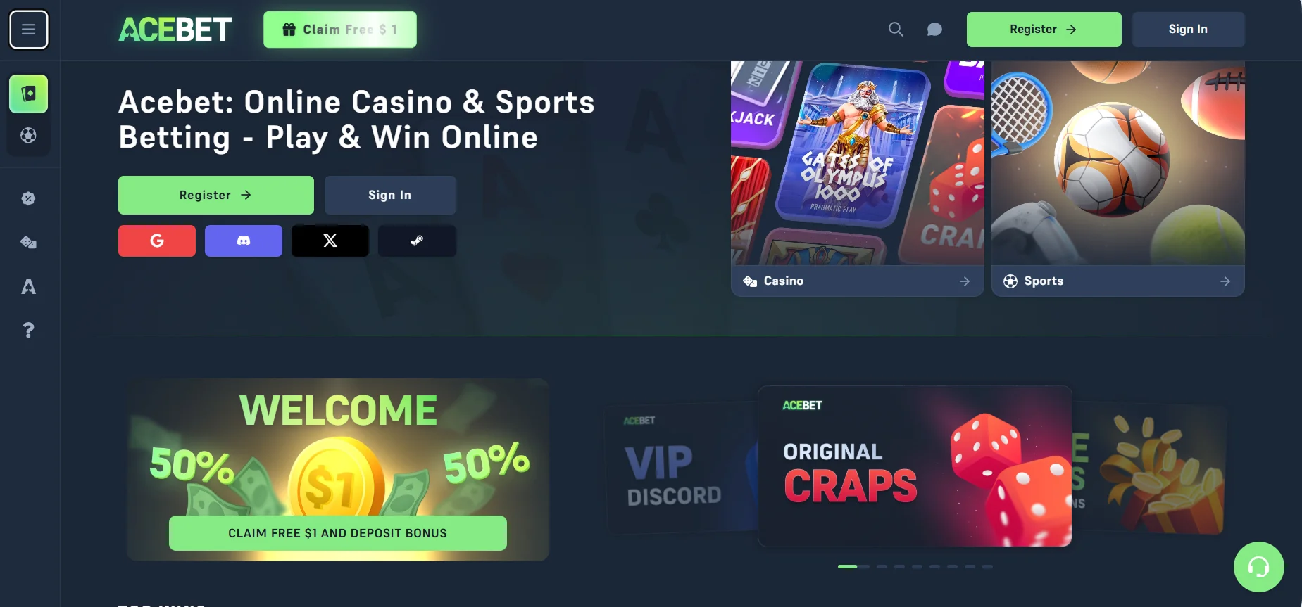 Tournaments run on the same schedule—daily, weekly, and monthly—with entry open to all accounts that meet minimum activity levels. Prize pools consist of bonus credits distributed to top finishers on leaderboards. A loyalty system exists, but level details and exact benefits remain unpublished at this stage. Sports bettors share the same offers as casino players; no dedicated sportsbook promotions are available. New accounts can claim a $1 credit using the code ACEBET during signup, providing a small starting balance for initial bets or spins.