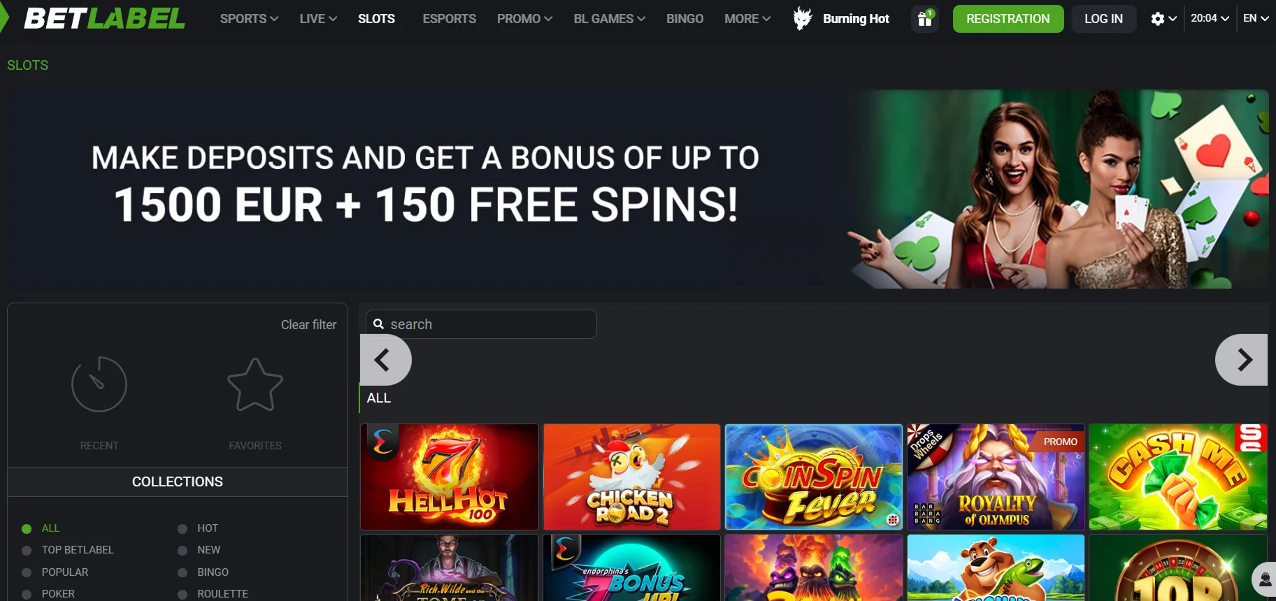 BetLabel operates as a hybrid platform that combines a full sportsbook with a casino section of around 4,000 games. It covers a wide range of sports markets, with particularly strong football coverage and live-betting options, while the casino side focuses mainly on slots, crash games, and a smaller selection of table and live-dealer titles supplied mostly by mid-tier studios like Pragmatic Play, Betsoft, Wazdan, and Hacksaw Gaming. The site accepts both fiat and a long list of cryptocurrencies, offers a four-part welcome package up to €1,500 + 150 free spins, weekly reloads, and a tiered VIP cashback program. Licensing details are menti...oned but not clearly displayed, and support is available 24/7. Overall, it suits players who want sports betting and casino games from the same account, though the game provider lineup leans toward smaller names rather than the biggest industry giants.