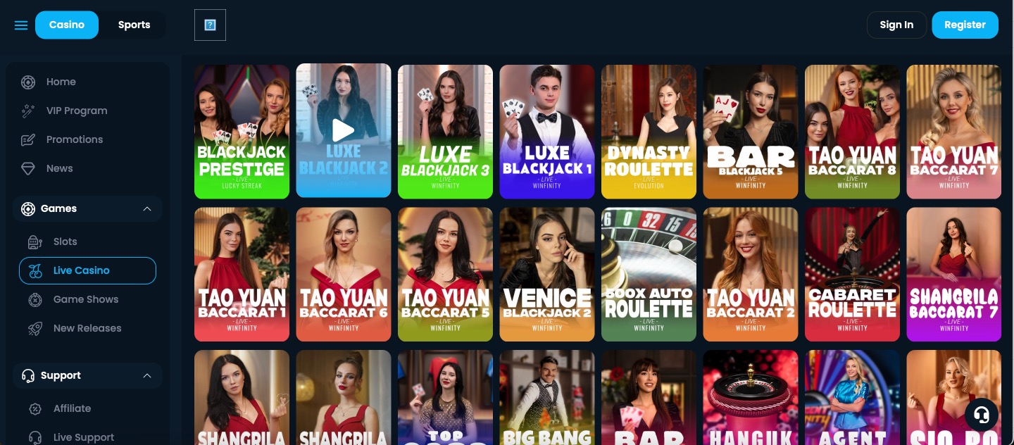 Live casino: Live casinoCasino games with live dealers streamed in real-time from authentic casino studios or casino floors, for a life-like, social casino experience in front of your screen.