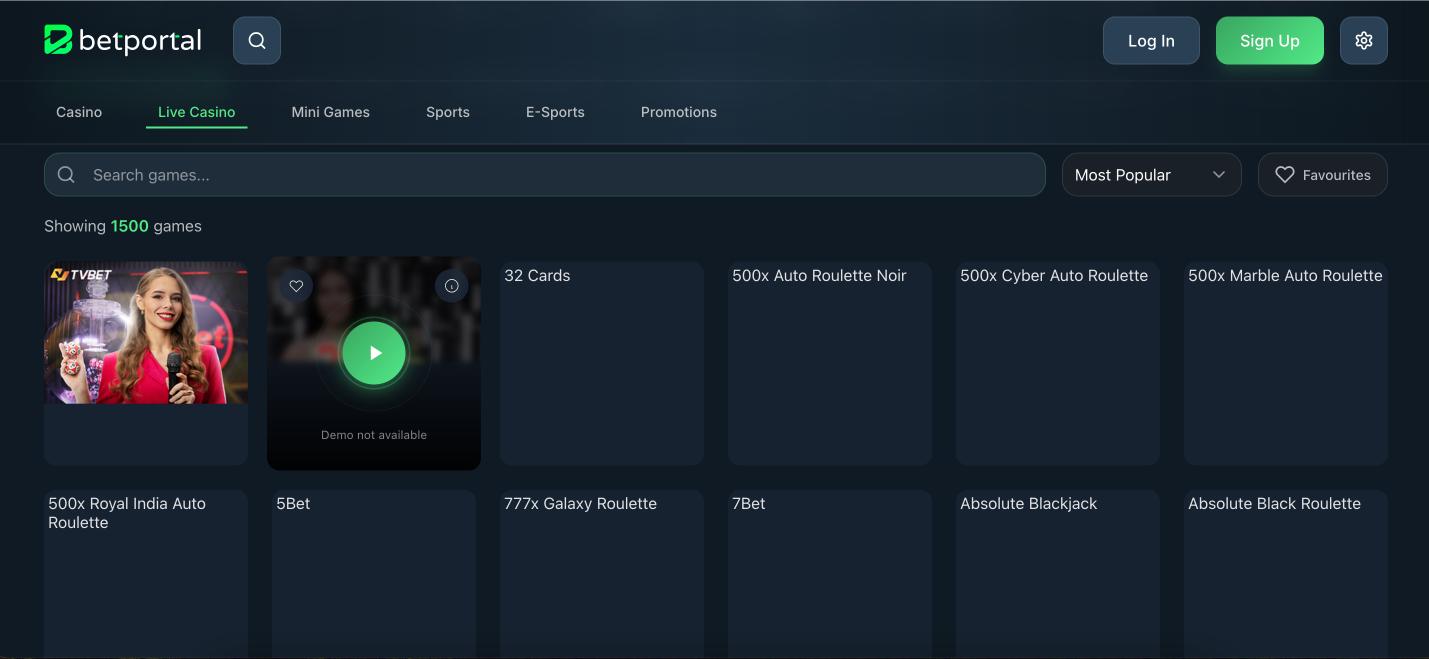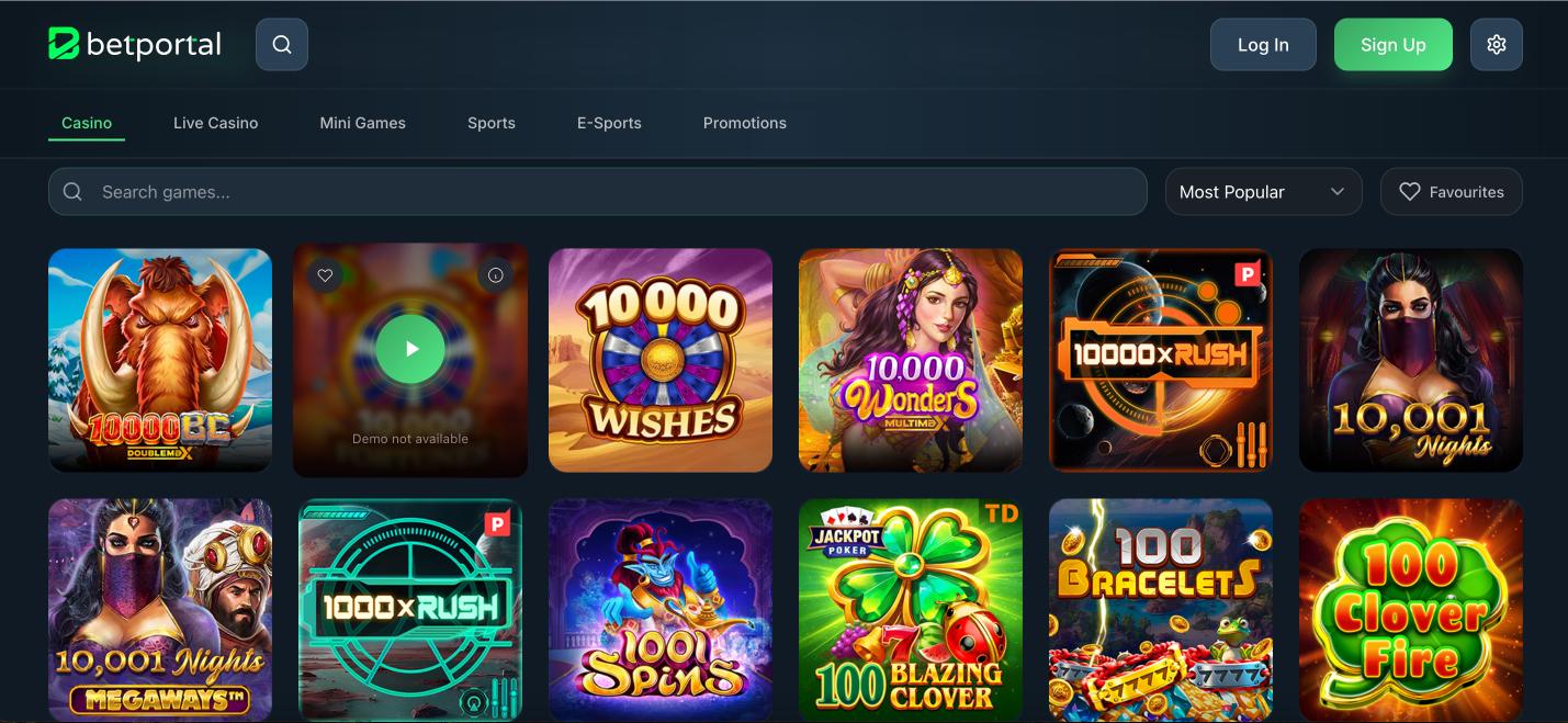 BetPortal Casino maintains a library that exceeds 9,500 games in total. This includes a substantial number of slot machines alongside table games and a live casino section. The games are grouped into categories that allow users to locate specific types, such as slots or live tables, without much difficulty.