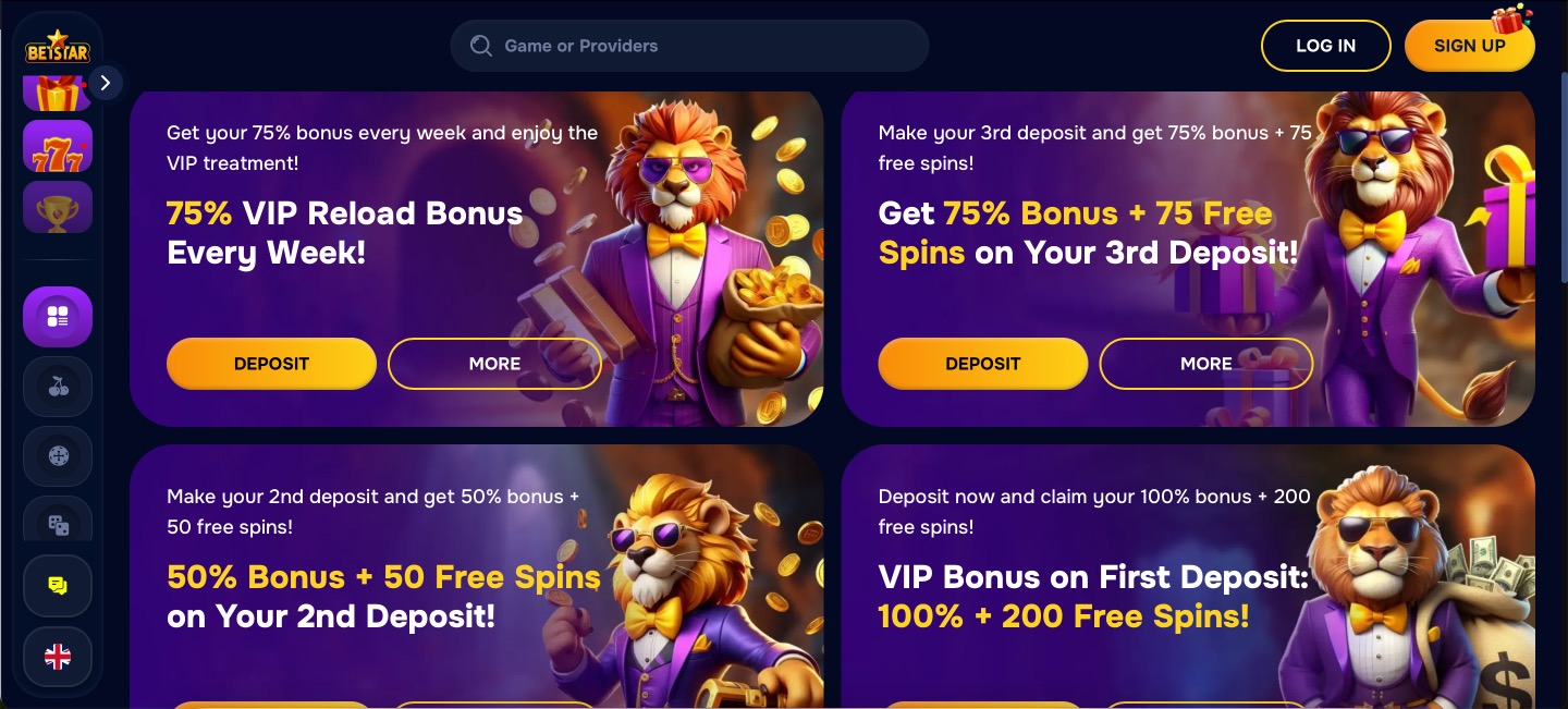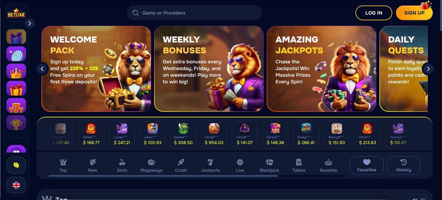 BetStar Casino arrived on the scene in 2025, handled by PixelForge Limited from its base in Belize, pulling in a solid mix of slots, table setups, and live dealer rooms run by actual staff. Beyond the core lineup, BetStar layers on a bunch of deals and extras that nudge players to stick around longer.