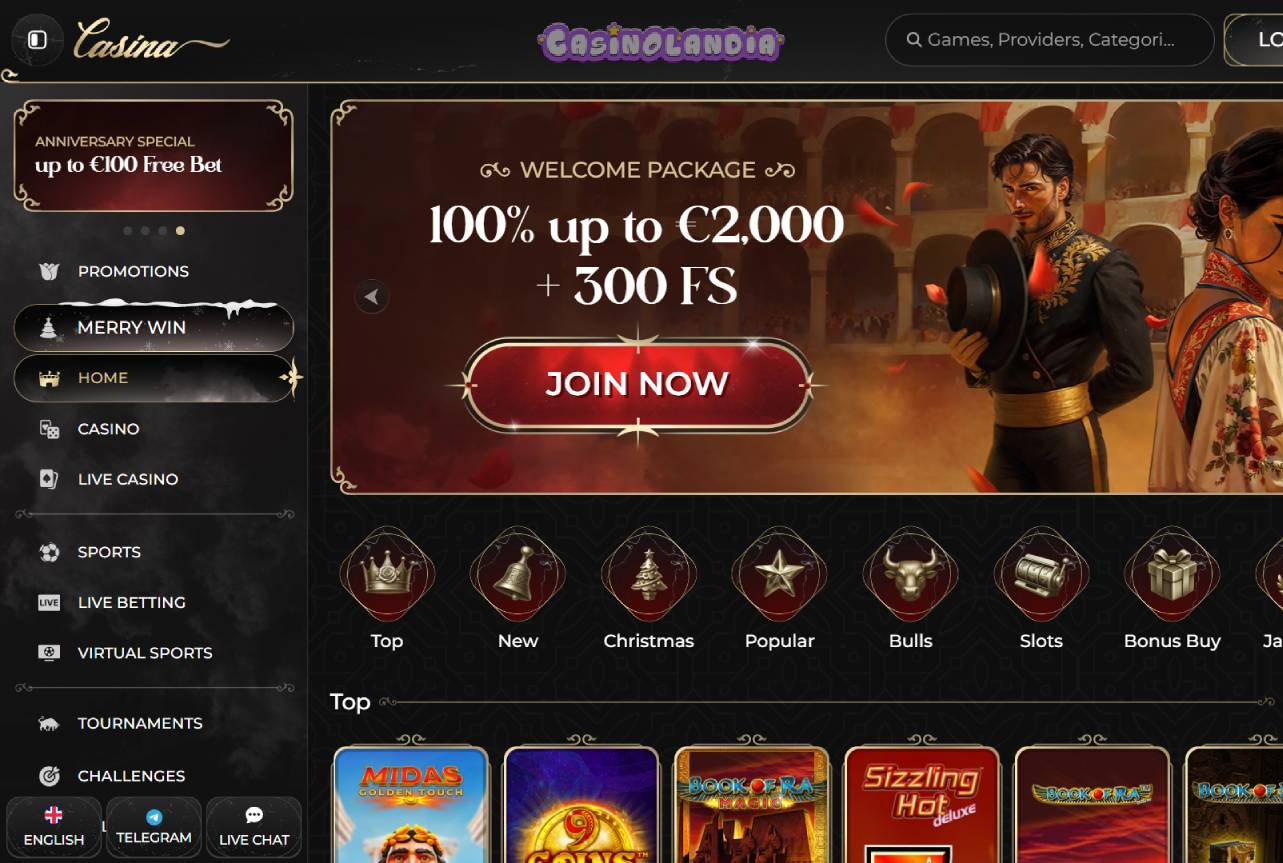 Live play holds a strong place in Casina with more than 500 active tables ready around the clock. The layout groups roulette, blackjack, baccarat and show styled rooms in smooth navigation blocks. Streams maintained solid clarity during testing and dealers keep sessions engaging with steady pace. Table limits vary so casual users and bigger stake players find suitable seats without search frustration. New live formats appear often which keeps the hall fresh even for users who return regularly.