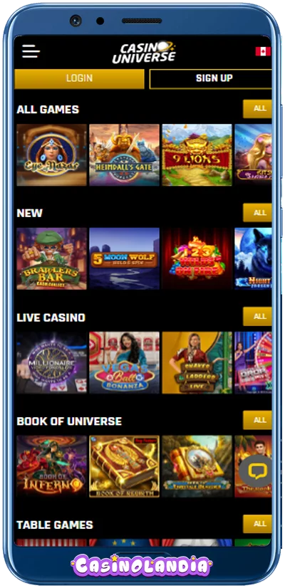 The Casino Universe mobile app offers players the flexibility to enjoy their favorite casino games on the go, directly from their iOS or Android devices. With a user-friendly interface optimized for mobile use, the app provides seamless navigation and access to a wide range of casino games, including slots, table games, and live dealer games. Players can easily browse through the game selection, make deposits and withdrawals, and access account settings with just a few taps on their screen. One of the standout features of the Casino Universe mobile app is its responsiveness and performance across various mobile devices and screen sizes. In case you're using a smartphone or tablet, the app adapts dynamically to ensure a consistent and enjoyable gaming experience. This level of optimization enables players to immerse themselves in the excitement of casino gaming anytime, anywhere, without compromise. Additionally, the mobile app maintains the same high standards of security and fairness as the desktop version of Casino Universe. Players can rest assured that their personal and financial information is protected by advanced encryption technology, while game outcomes are determined by certified random number generators to ensure fairness and transparency.
