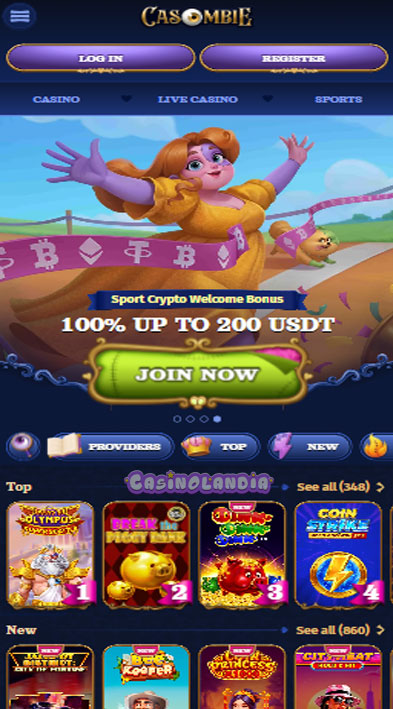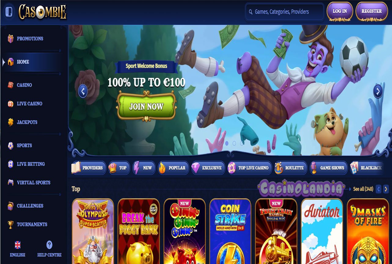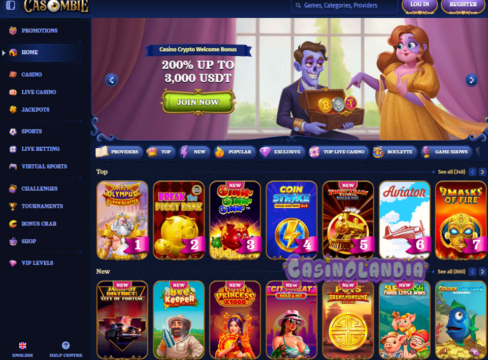 Casombie Casino Home Screen