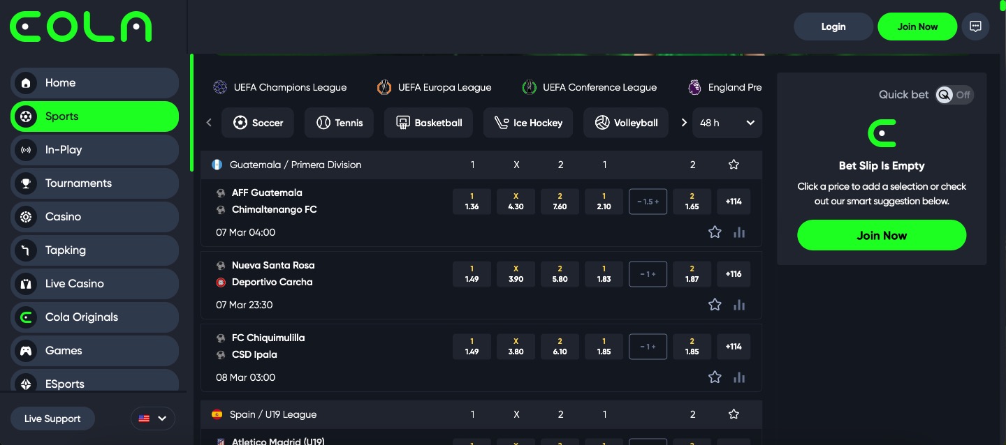Cola Casino stocks thousands of slots paired with live dealer tables and sportsbook markets. Categories sort popular picks, latest additions, progressive jackpots, live casino rooms, and sports events. Certified providers guarantee fair results and reliable browser performance. Players shift smoothly between slot sessions, live streams, and betting on matches.