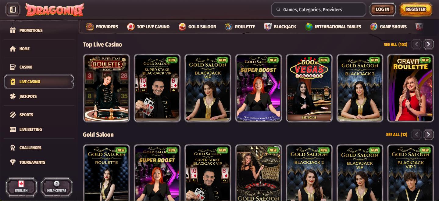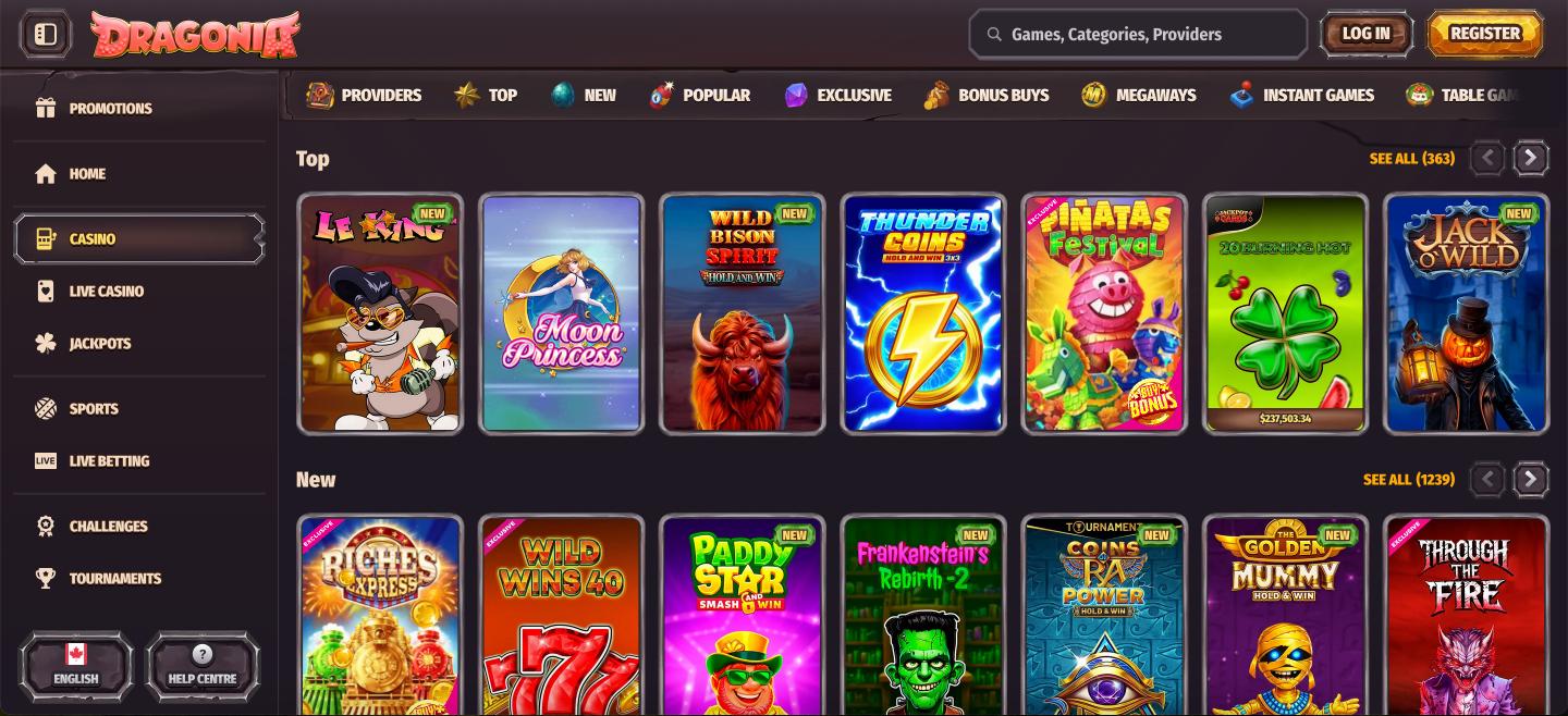 Dragonia Casino lists more than 10,000 slot titles and over 1,000 live dealer tables. The lobby organizes content into sections for slots, jackpot games, table options, and live sessions. All titles come from established software studios to maintain consistent performance and audited fairness. Players can switch between slot reels and live table setups without leaving the main interface.