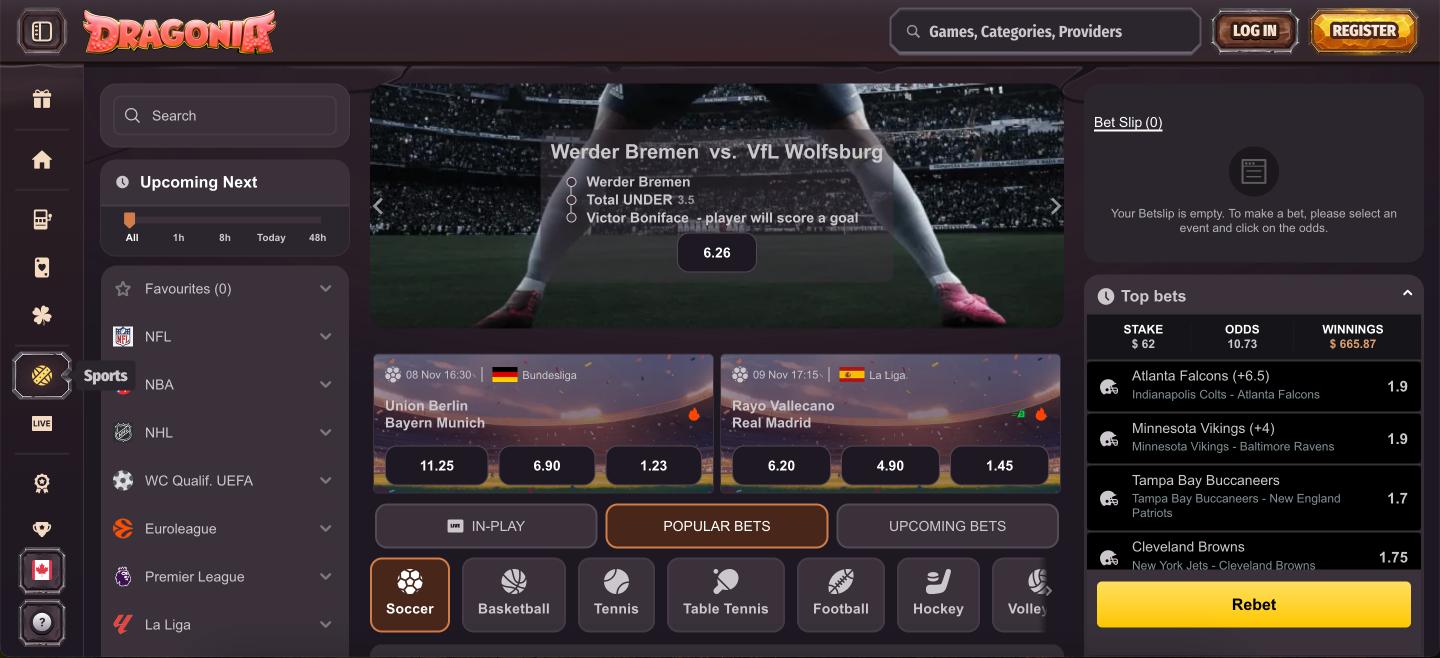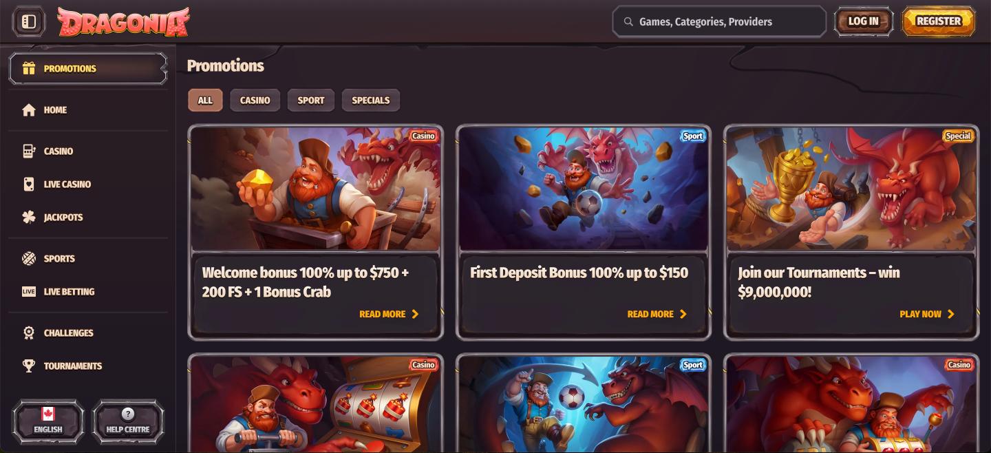 Dragonia Casino operates as an online platform with a broad selection of gaming options and sports betting markets. The site includes a large collection of slot machines, standard table games, and a live dealer area for real-time sessions with trained staff. Additional promotions and bonus structures are in place to provide players with extra value during their time on the site.