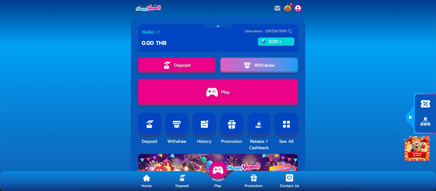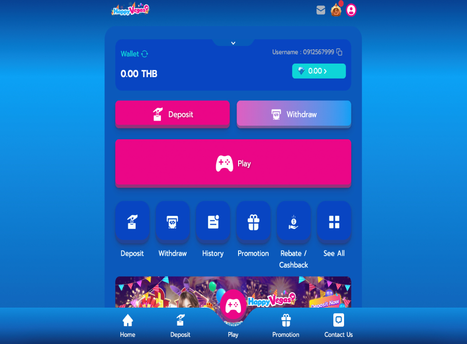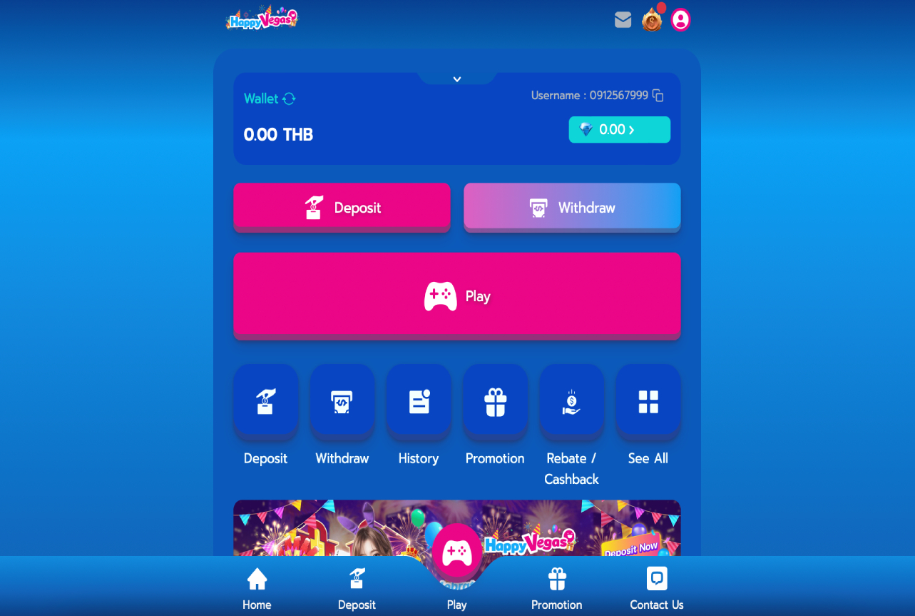 Happy Vegas Casino opens with a clean, bright layout built specifically for Thai players, placing slots and live tables just a click away. The main menu keeps navigation simple, with direct links to games, promotions, support channels and account tools all clearly labeled in Thai. Large banners on the homepage showcase the welcome offer, daily rebates and referral rewards, creating immediate visibility for active deals. Registration takes only a few fields and verifies quickly for local users. The overall design focuses on speed, security and familiarity, using localized payment options and native language support throughout. Happy Vegas positions itself as a straightforward, trustworthy hub for Thai gamblers who value fast access, fair play and rewards tailored to regular slot and live casino sessions.