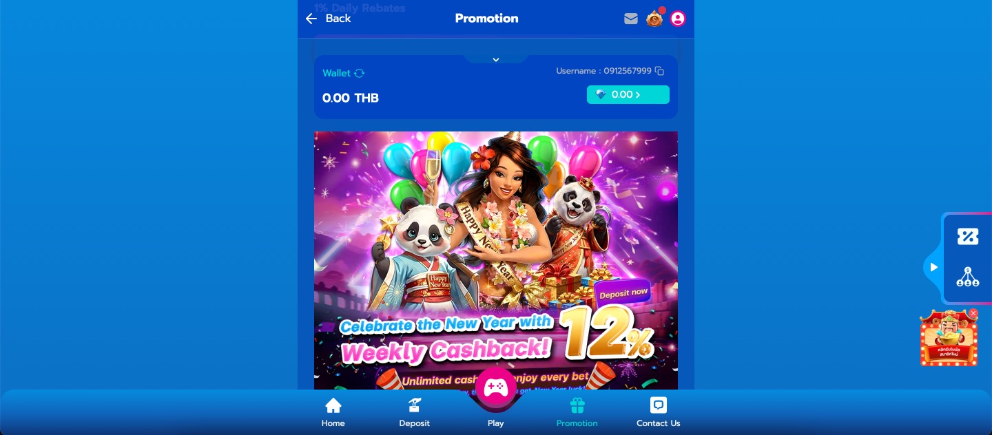 bonus iconHappy Vegas maintains a steady stream of rewards built around daily play and loyalty. The welcome match gives new users a solid start on slots, while the daily reload adds value to every top-up. Automatic rebates and cashback return portions without manual claims, and referral commissions encourage sharing. Points-based mystery boxes and lucky cards bring extra surprises. All offers use low wagering and credit quickly to suit Thai players who deposit regularly.