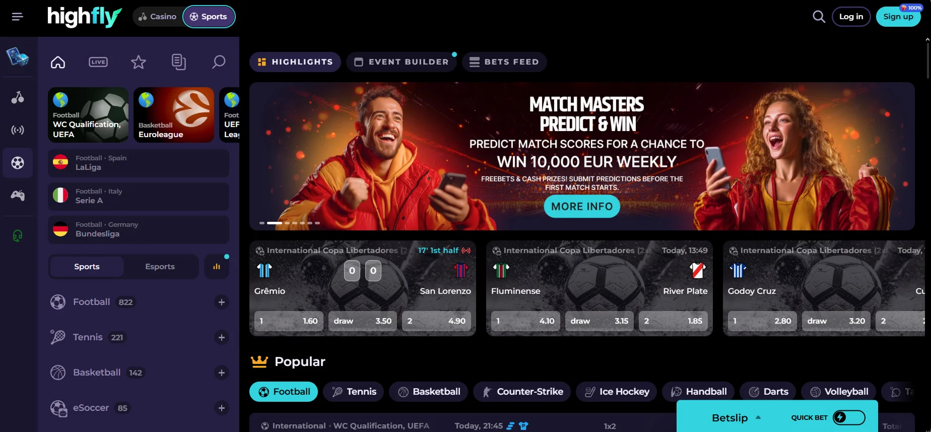 HighFlybet Casino operates as a combined gaming and betting platform that covers both casino titles and sports wagering. The site hosts a catalog of more than 8,000 games, ranging from standard slot releases and table options to crash games, scratch cards, jackpots, and a full live casino area with over 2,000 active tables. A separate sportsbook section handles pre-match and in-play markets across more than 50 sports and thousands of daily events.