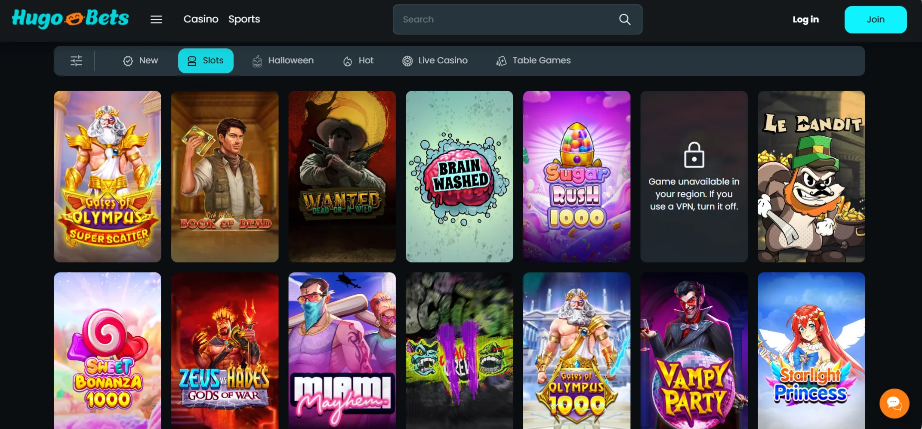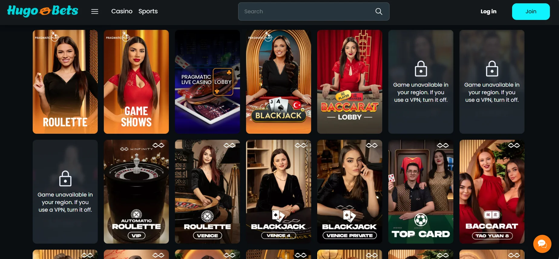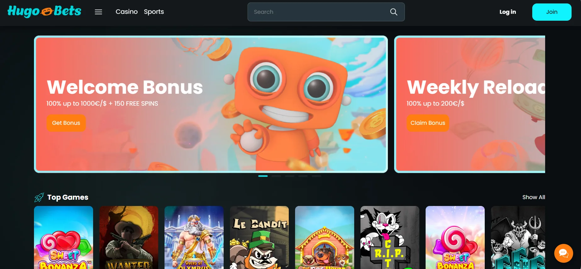 HugoBets Casino operates as an online platform focused on casino games, offering a selection that includes slots, table games, and live dealer options. The site maintains a straightforward layout, with sections dedicated to different game types and account management features. Players can access content in multiple languages, though specific ones are not detailed upfront. HugoBets does not include sports betting in its offerings, and cryptocurrency payments are supported alongside traditional methods, which may appeal to users comfortable with digital currencies.