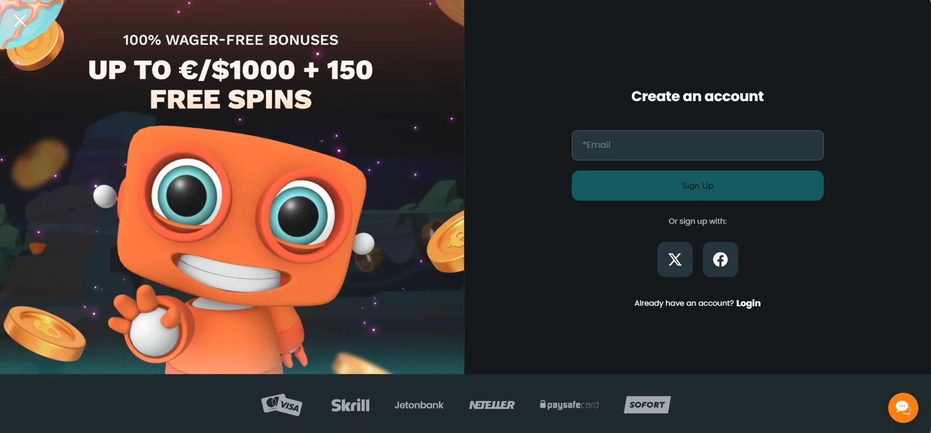 Welcome Bonus of 1000 €/$ + 150 Cash spins!