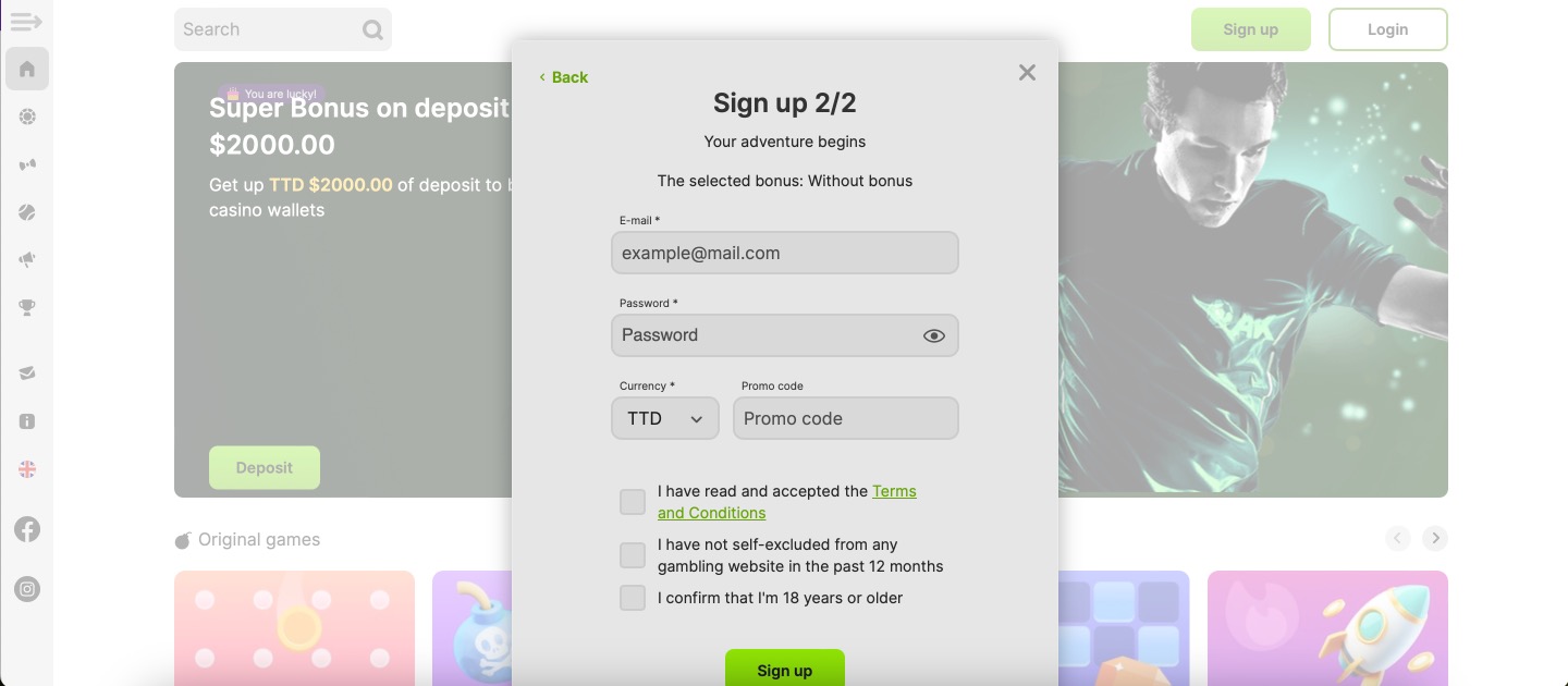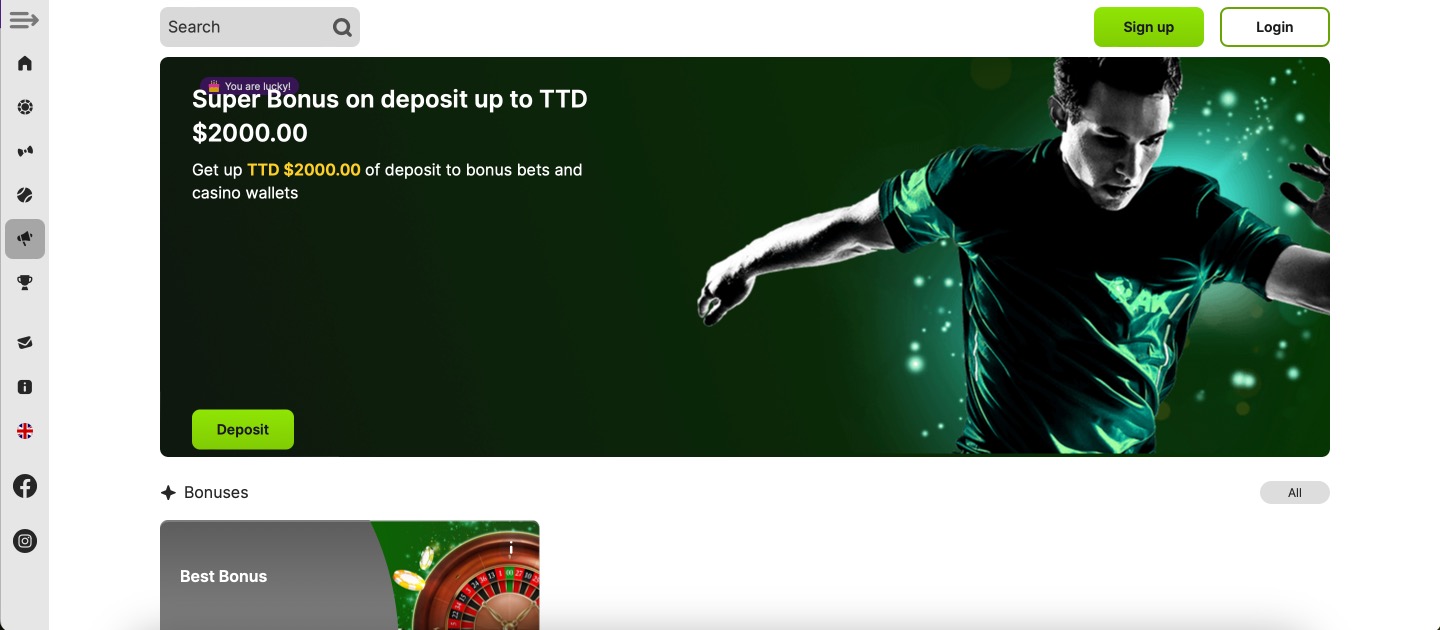 You are lucky! Super Bonus on deposit up to TTD $2000.00