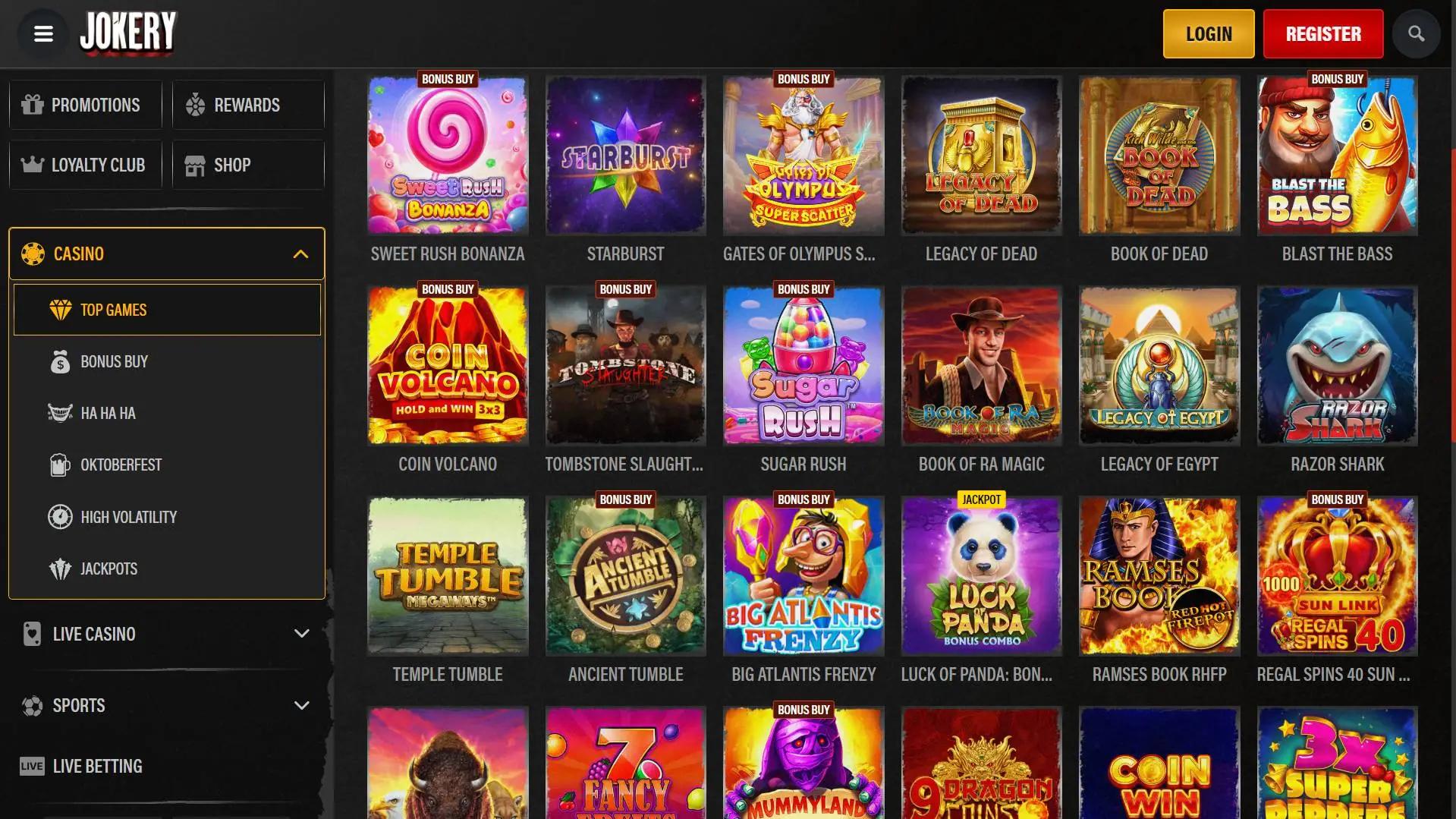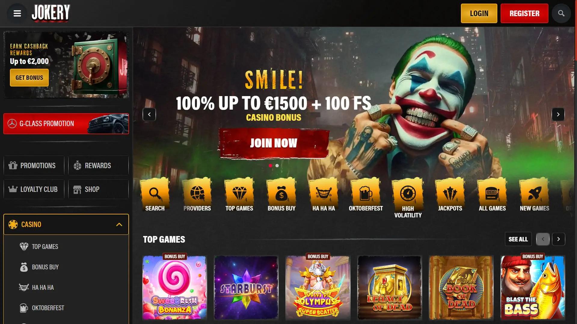 Jokery Casino stocks over 10,000 titles across slots, tables, and live formats, drawing from nearly 100 developers to fill categories without gaps. Slots dominate with progressive jackpots and themed reels, while table options cover blackjack variants, roulette wheels, and baccarat tables in both RNG and streamed versions. The live section runs continuously with dealers handling multiple games, including poker rooms and game shows for lighter sessions. Sorting tools filter by provider, volatility, or theme, though search precision depends on exact titles entered. This breadth suits extended play, as users cycle through releases without repetition, though peak-hour loads may lag on older devices.