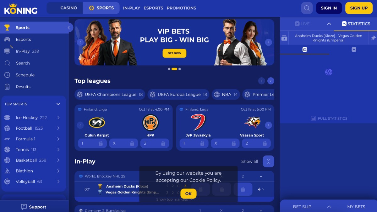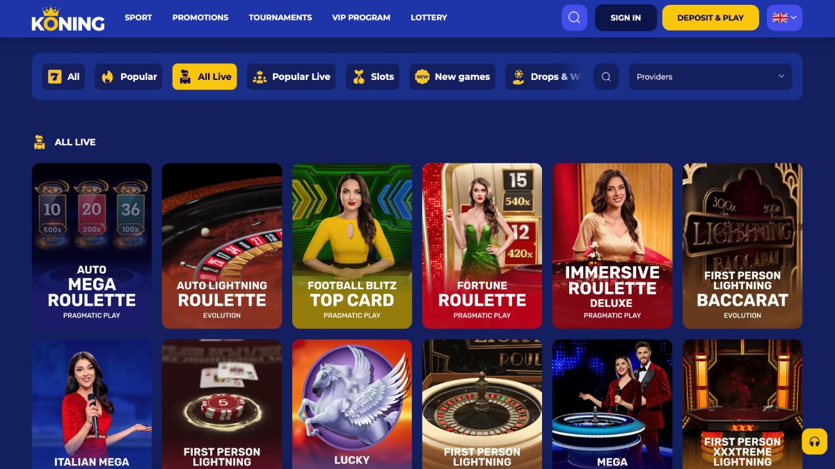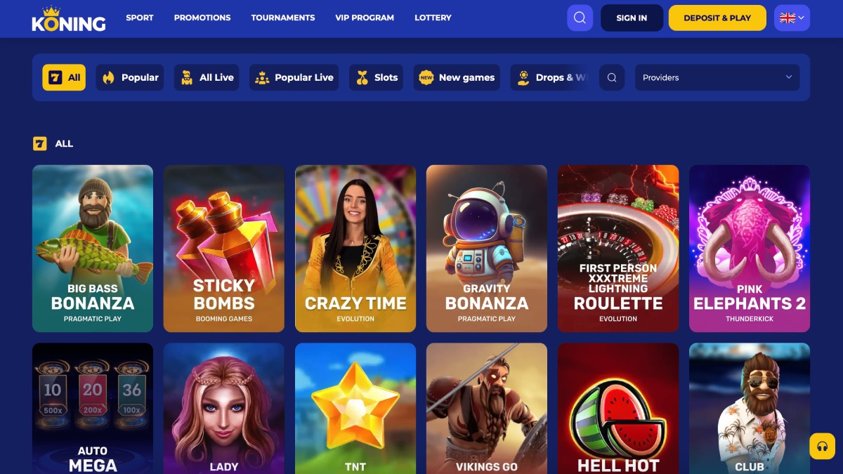 Koning Casino offers a comprehensive online gaming experience with an impressive selection of over 7,700 slot games, a variety of table and live dealer games, and a sportsbook for betting enthusiasts. The platform collaborates with leading providers such as Pragmatic Play, Hacksaw Gaming, Yggdrasil, Spinomenal, and BGaming, ensuring a high-quality and diverse portfolio.