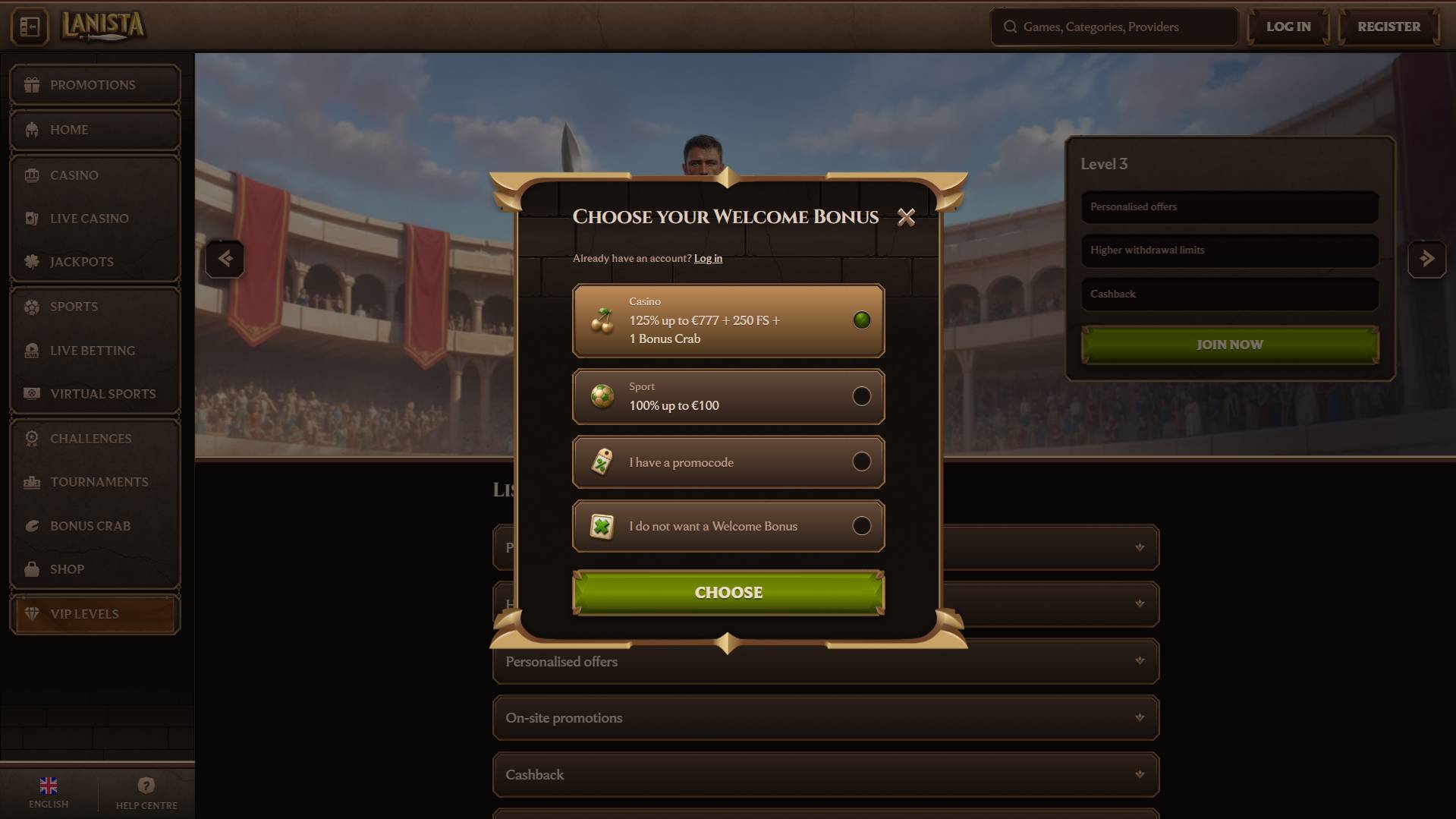 Lanista Casino Current Bonuses