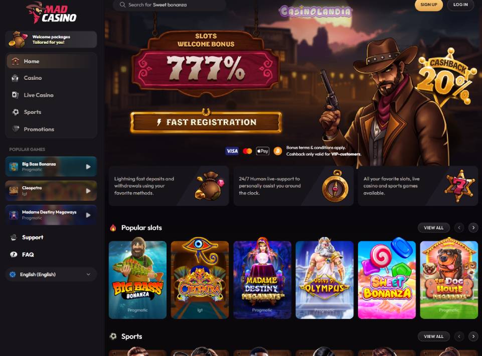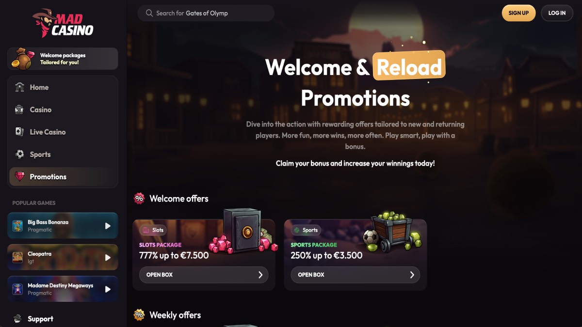 Mad Casino offers a broad and dynamic gambling experience, combining a vast collection of slots, live dealer games, and a fully integrated sportsbook. Players benefit from generous and straightforward promotions, including multi-deposit welcome bonuses and regular weekly reloads, all without the need for bonus codes. The platform supports a wide array of payment options, including major cards and cryptocurrencies, and is fully optimized for mobile play. While the lack of a disclosed license and a dedicated VIP program may be a drawback for some, the casino delivers a versatile and user-friendly environment for both casual players and sport...s bettors.