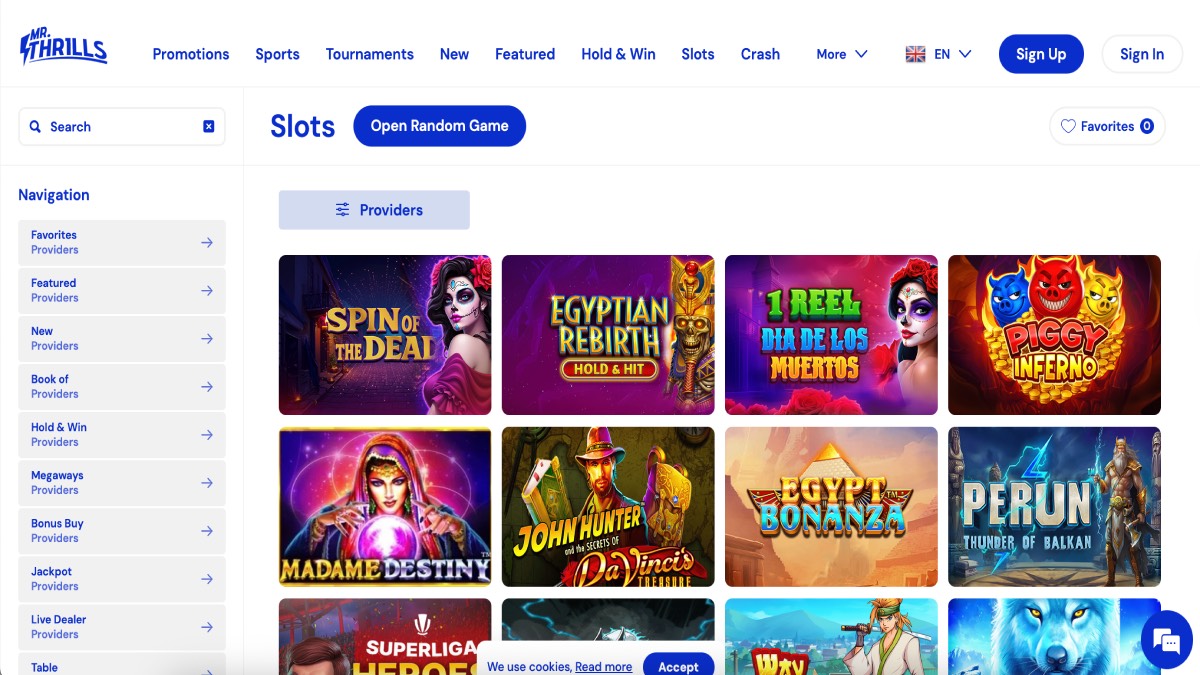 MrThrills partners with a wide range of reputable software providers to deliver a high-quality gaming experience. The selection includes well-established names such as Amatic, Apollo, Playtech, Pragmatic Play, Play’n GO, and Microgaming, ensuring both variety and reliability in game performance. These providers contribute a mix of classic and modern titles, from visually rich slots to immersive live dealer games, enhancing the overall entertainment value. Collaborating with multiple trusted developers also guarantees that players have access to innovative features, smooth gameplay, and fair outcomes across the casino’s extensive portfolio.