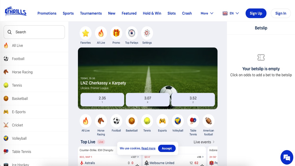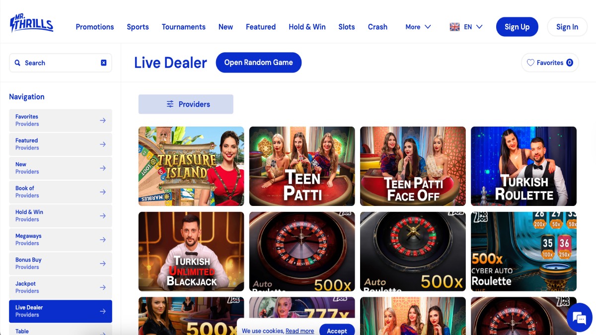 The game selection at MrThrills is extensive, catering to a wide variety of player preferences. Over 2,300 slot titles are available, ranging from classic favorites to the latest releases, ensuring plenty of options for every type of slot enthusiast. Players seeking a more interactive experience can explore around 100 live dealer games, offering real-time gameplay and an immersive casino atmosphere. The platform also features specialty options like Hold & Win and Crash games, which provide fast-paced, engaging mechanics for thrill-seekers. Beyond traditional casino offerings, a fully integrated sportsbook allows users to bet on numerous sporting events, creating a well-rounded gaming experience that appeals to both casino and sports fans.