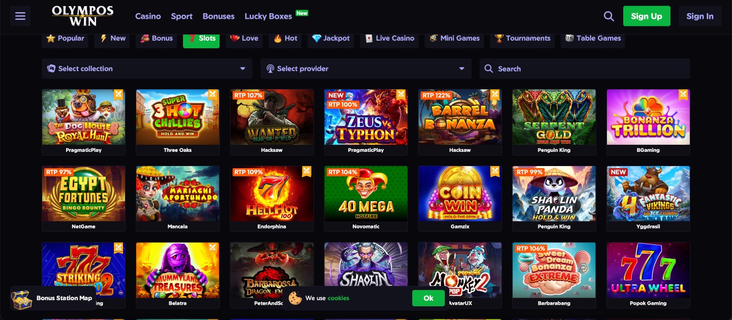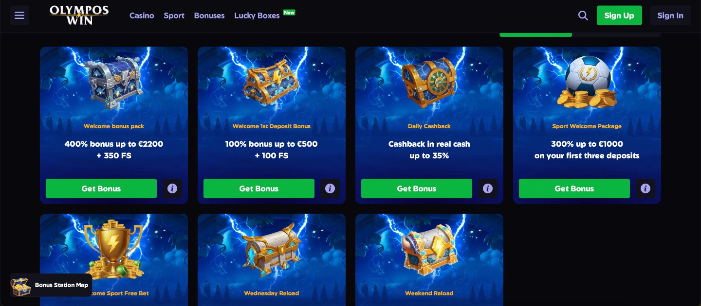 OlymposWin Casino divides its opening offer into five deposits for combined 400% matching up to €2200 and 350 free spins. Daily cashback reaches 35% as real funds. Over 9,000 games include slots, live tables, and sports betting. Fortuna Games N.V. holds Curaçao license OGL/2024/112/0974. Live chat and email provide support.