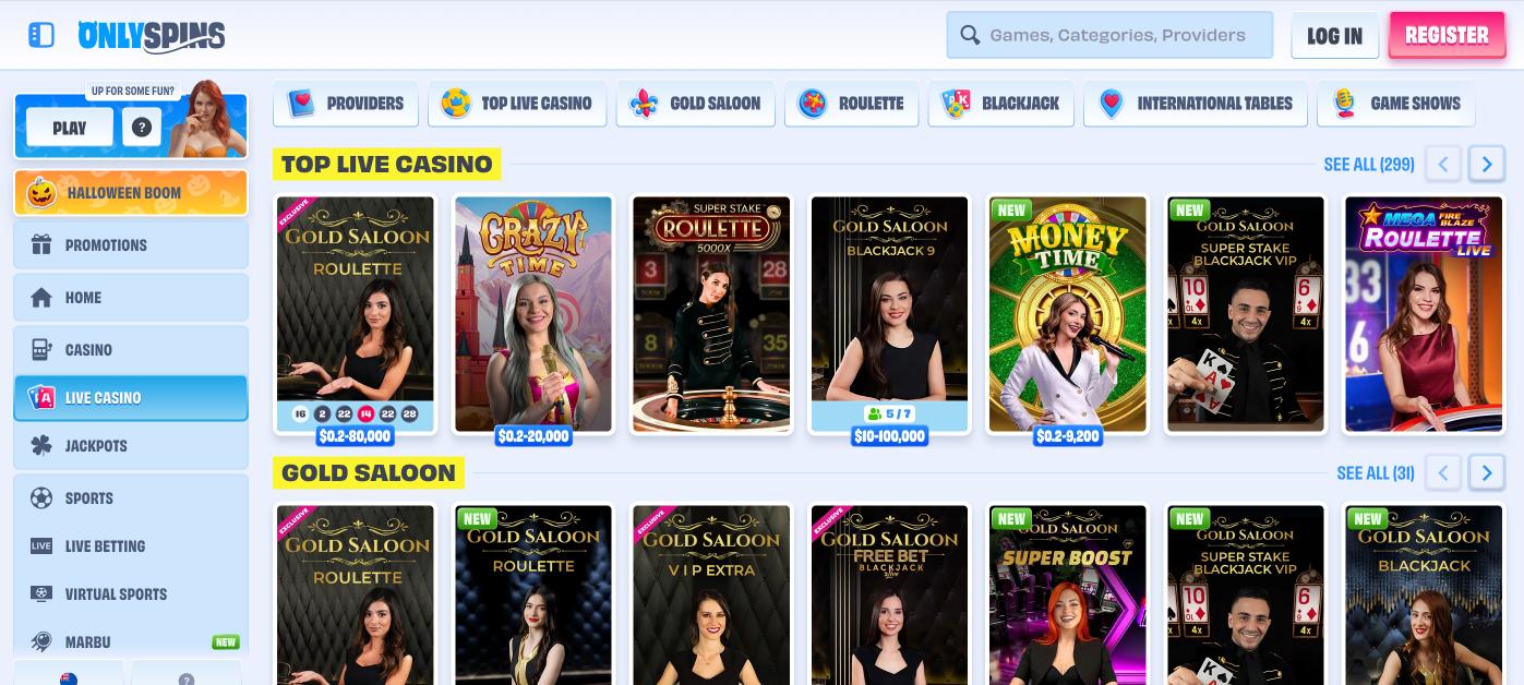 What games are available at OnlySpins Casino — slots, table games, or live casino?