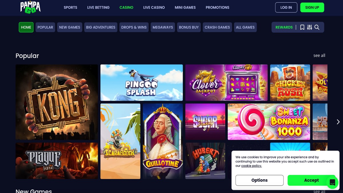 PampaGo Casino delivers a well-rounded online gaming experience that combines an extensive selection of over 2,000 slots, more than 100 live dealer games, and a fully integrated sportsbook. The platform is supported by reputable software providers, ensuring top-quality entertainment across all categories. Players benefit from a wide range of bonuses, including a generous welcome offer and weekly reloads, alongside flexible payment options such as Visa, Mastercard, Interac, Apple Pay, Google Pay, and cryptocurrencies. With secure transactions, a €5,000 monthly withdrawal limit, and licensing from the Government of Curaçao, the casino maintains a strong focus on safety and transparency. Responsive customer support and a user-friendly environment further enhance its appeal, making PampaGo Casino a dependable and engaging choice for both casino and sports betting enthusiasts.