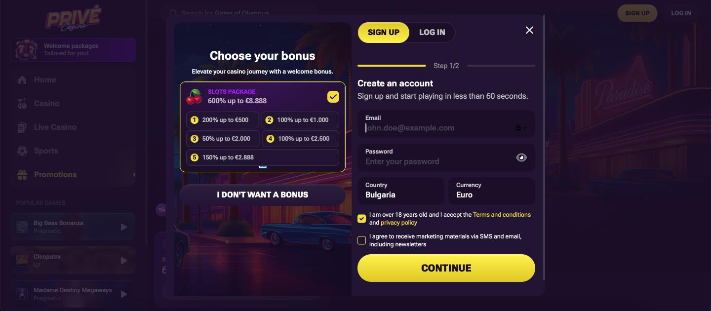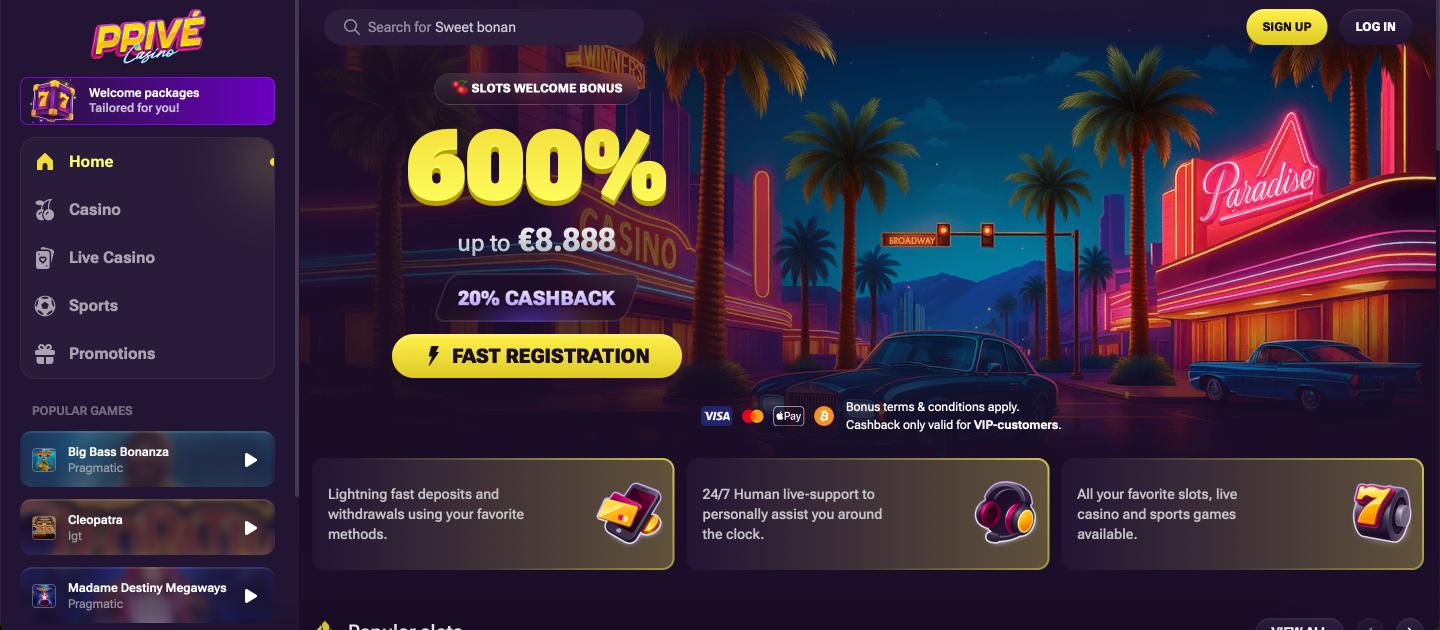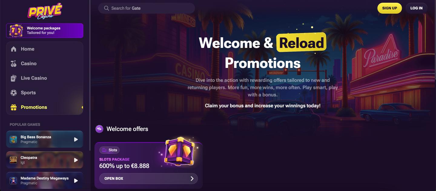 Prive Casino: Five big bonuses. Slots lead. Sports included.