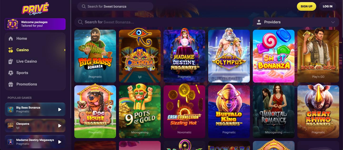 Prive Casino places strong emphasis on slots while maintaining solid coverage of live dealer tables and sports betting options. The catalog includes releases from established studios, delivering smooth gameplay across all categories. Members open titles directly in browser, switching easily between slot sessions, live streams, and betting markets. Categories group popular slots, new additions, and jackpot games for fast navigation. Sports markets span major leagues alongside niche events.