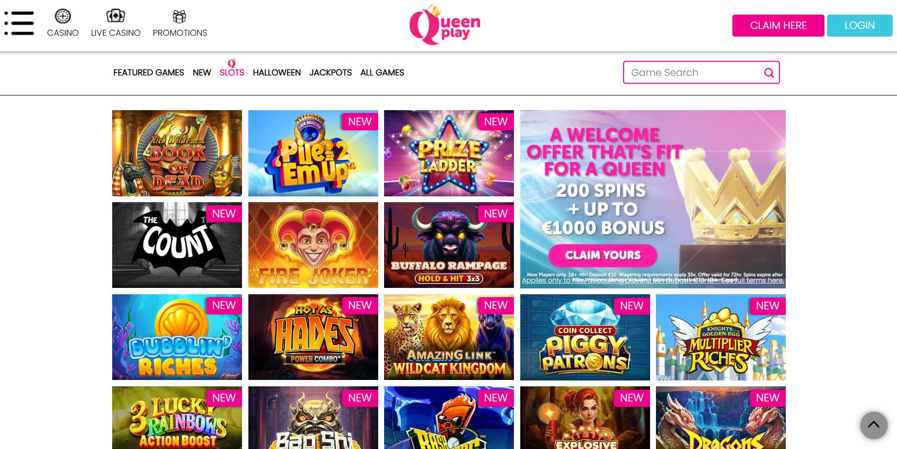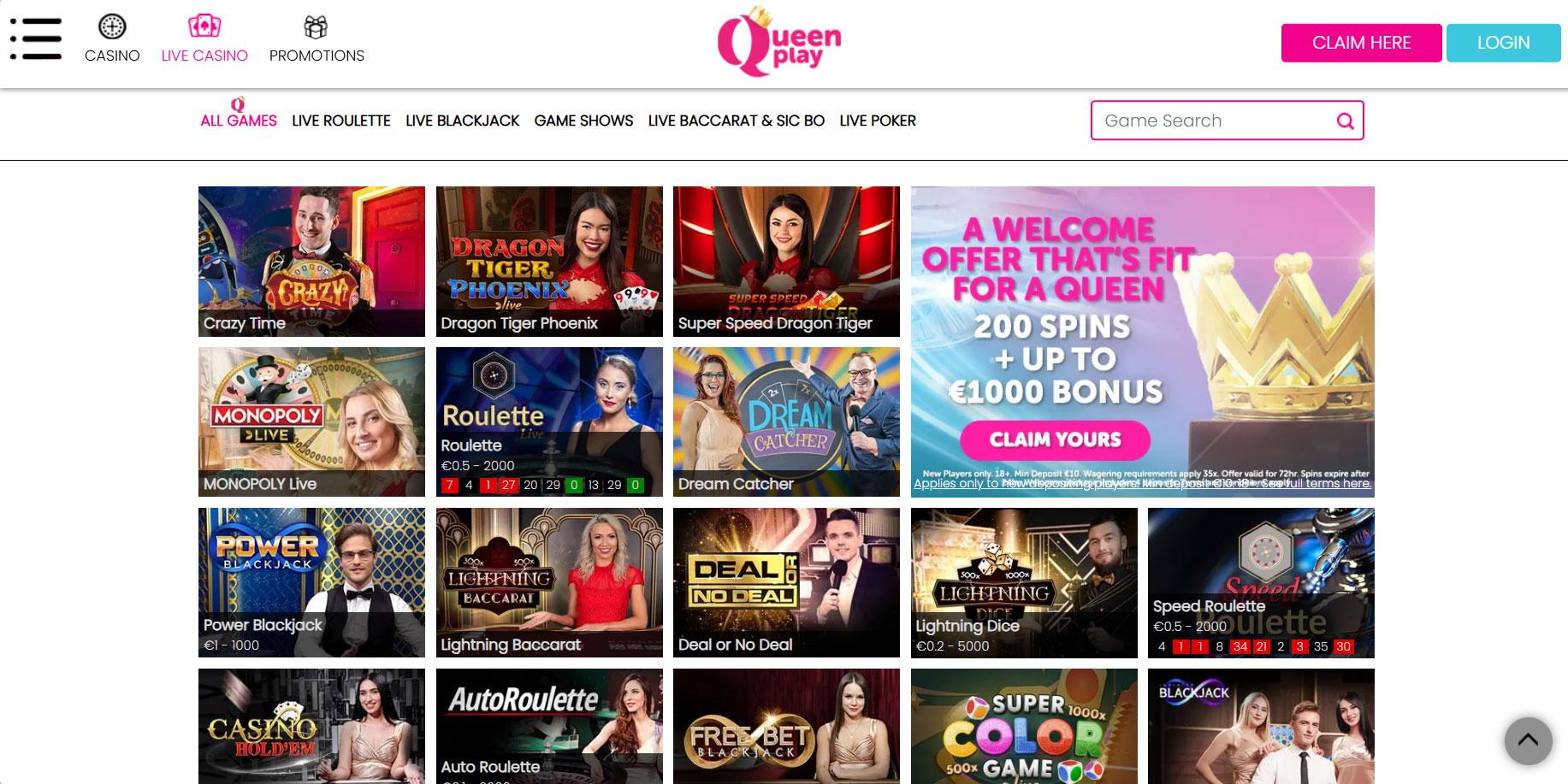 Queenplay Casino stocks over 3000 titles, heavy on slots with classics, videos, and Megaways from NetEnt and Play’n GO. Table games include roulette, blackjack, baccarat, and poker variants, plus video poker. Live casino features Evolution dealer tables for blackjack, roulette, and shows, while scratch cards provide instant wins.