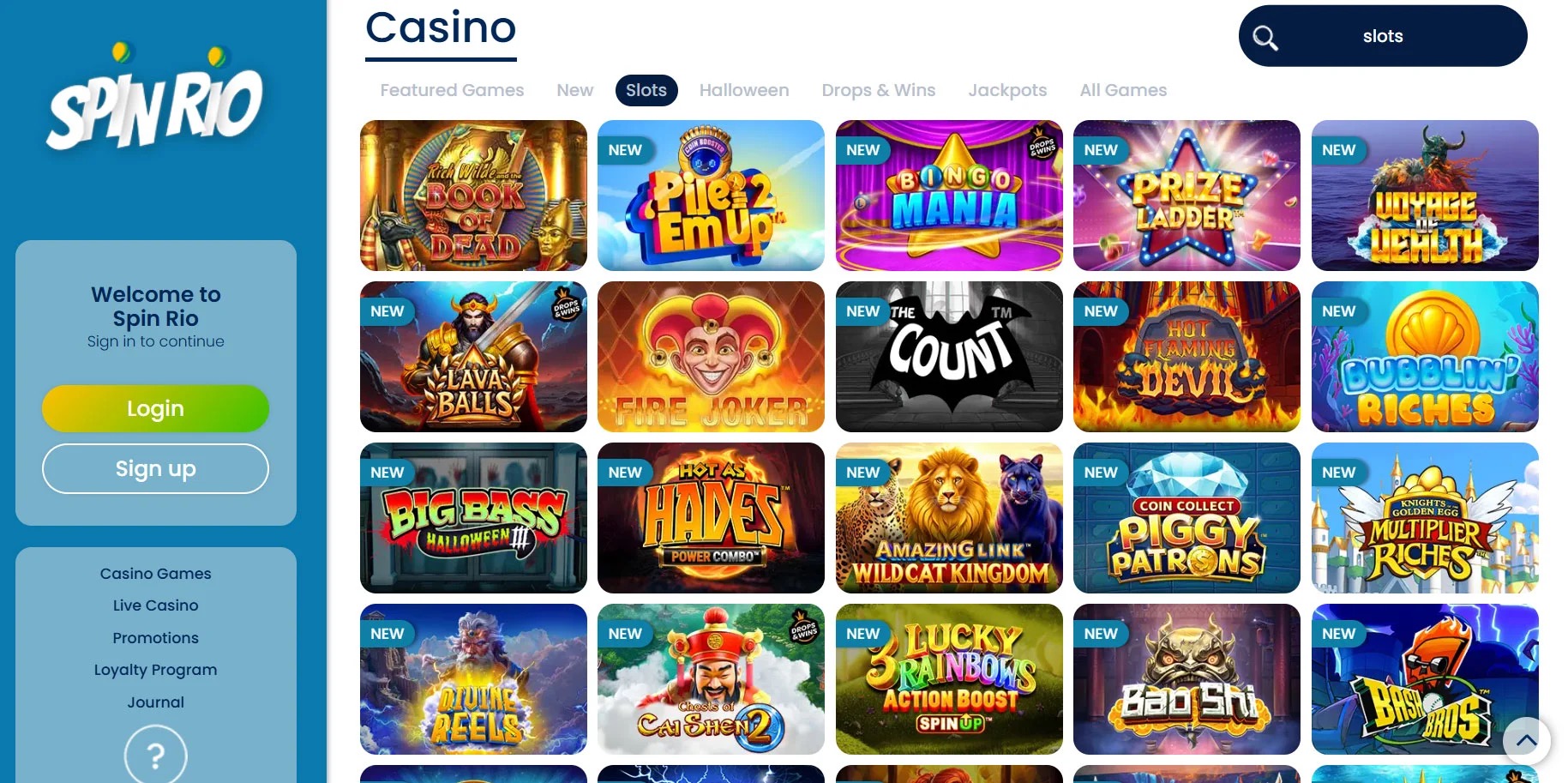 What games are available at Spin Rio Casino — slots, table games, or live casino?