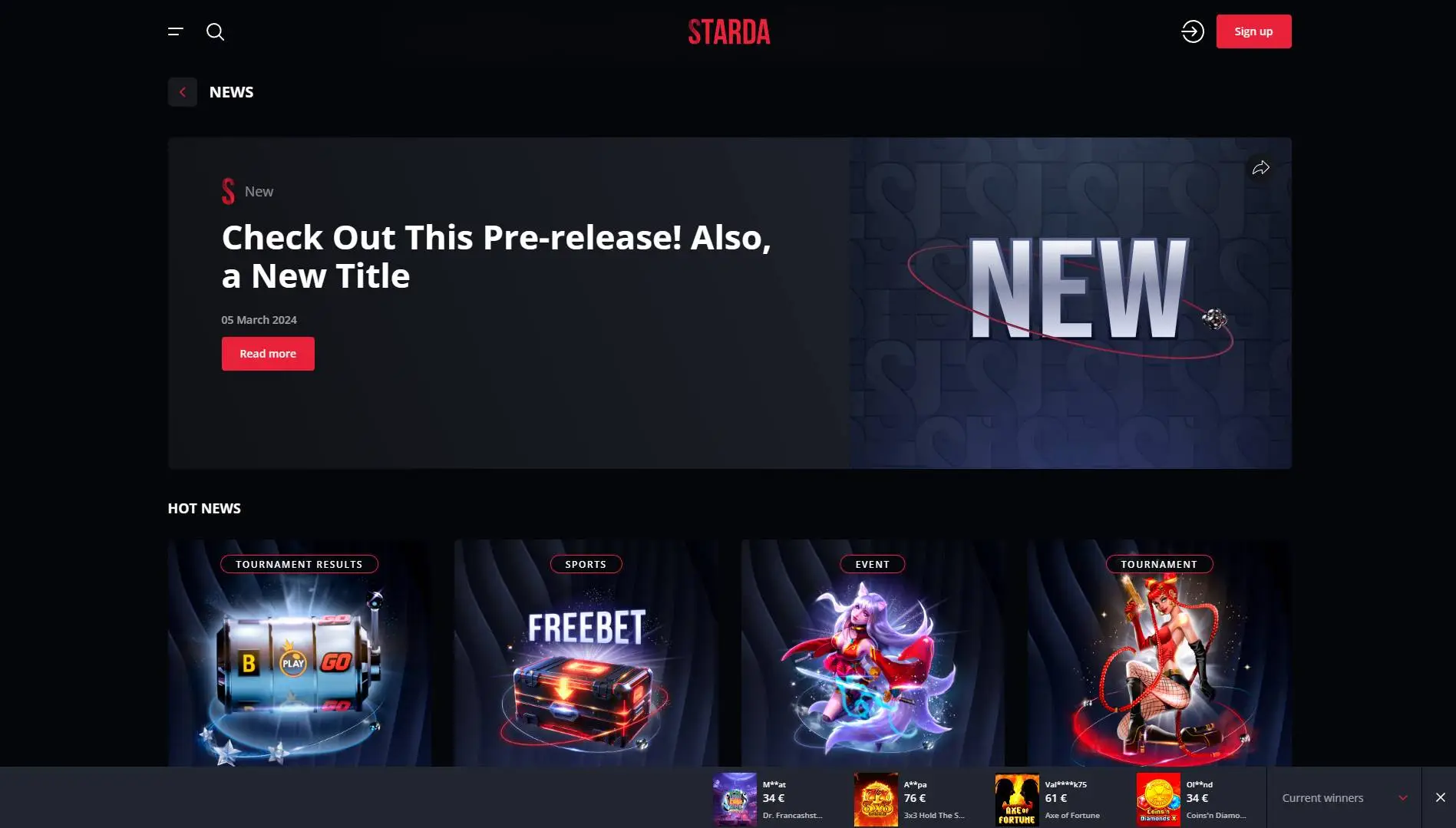 Starda Casino offers a range of exciting features to enhance the gaming experience for its users. Firstly, players can enjoy the convenience of accessing the casino on the go with its mobile version, ensuring entertainment is just a tap away anytime, anywhere. Additionally, Starda Casino hosts thrilling tournaments, where players can compete against each other for exciting prizes and the glory of victory. For those who enjoy sports betting, the casino also features a sportsbook section, allowing players to wager on their favorite sports events and matches. Moreover, Starda keeps its users informed and engaged with a dedicated news section, providing updates on the latest happenings in the world of gaming and beyond. With these diverse offerings, Starda Casino ensures there's never a dull moment for its players, catering to a wide range of interests and preferences.