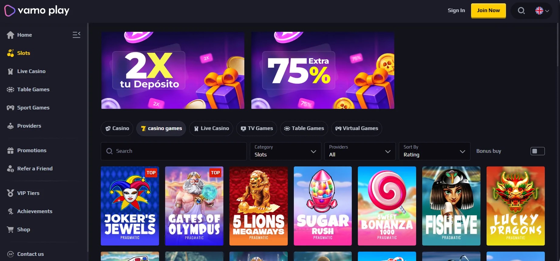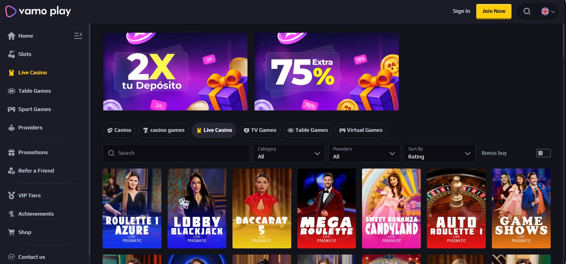 VamoPlay Casino stocks more than 11,000 titles across its categories, drawing from a broad pool to cover slots, live sessions, tables, and virtual simulations. The organization splits things into slots for quick plays, live areas for dealer-led action, and dedicated spots for classics or alternatives. Filters help narrow down by provider or theme, and search functions pull up specifics fast. The volume supports extended sessions without repetition, though load times can vary on slower connections.