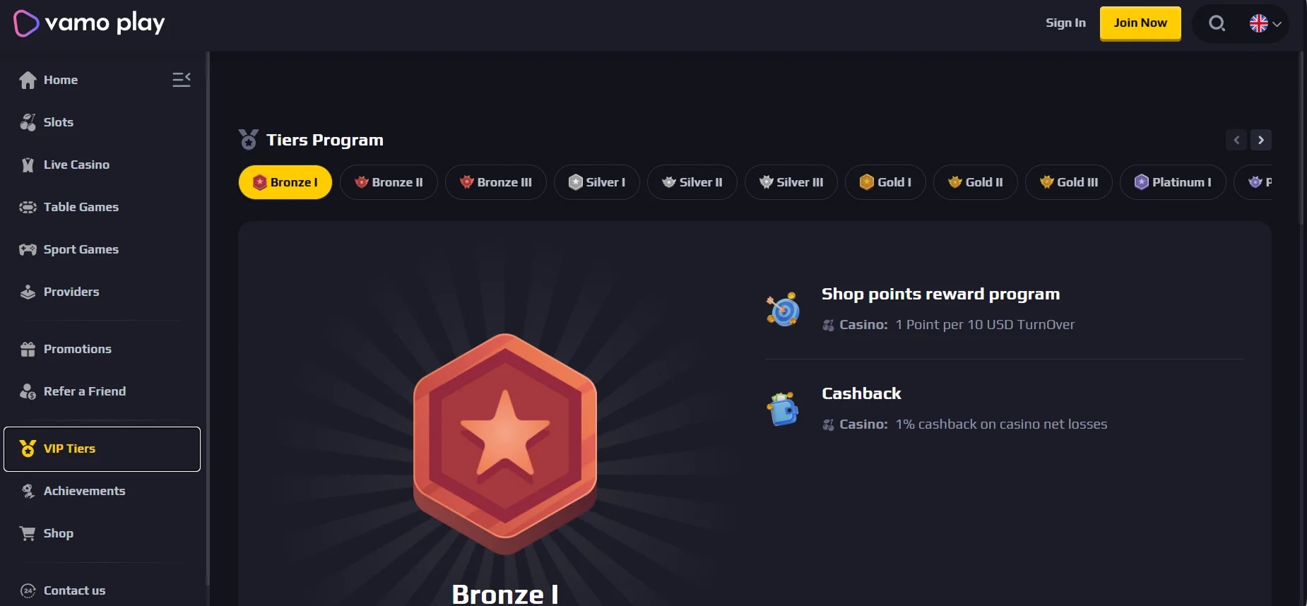 Beyond these, the achievements system tracks progress through 75 tasks for VIP advancement, and the shop lets players redeem points earned from wagers for items like free spins. While the wagering on the main deposit offer sits at a higher 45x, the cashback applies minimally, balancing out for regular users. This mix keeps incentives accessible without overpromising, fitting the site's regional focus.