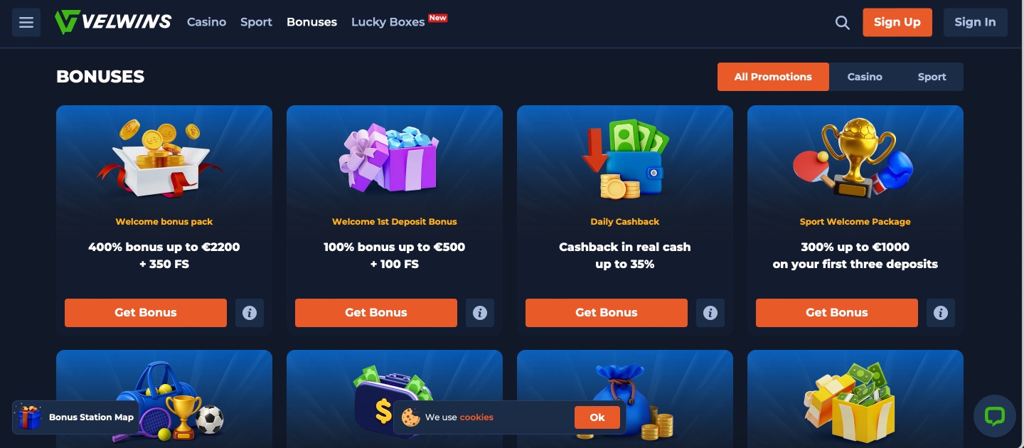 Velwins Casino rolls out a multi-deposit welcome package that adds up to 400% matching across five deposits, reaching €2200 total plus 350 free spins on selected slots. Additional offers include daily cashback returning up to 35% in real cash and regular reload bonuses on weekdays and weekends. Loyalty tracking unlocks personalised deals over time. All promotions carry clear activation steps and terms to follow.
