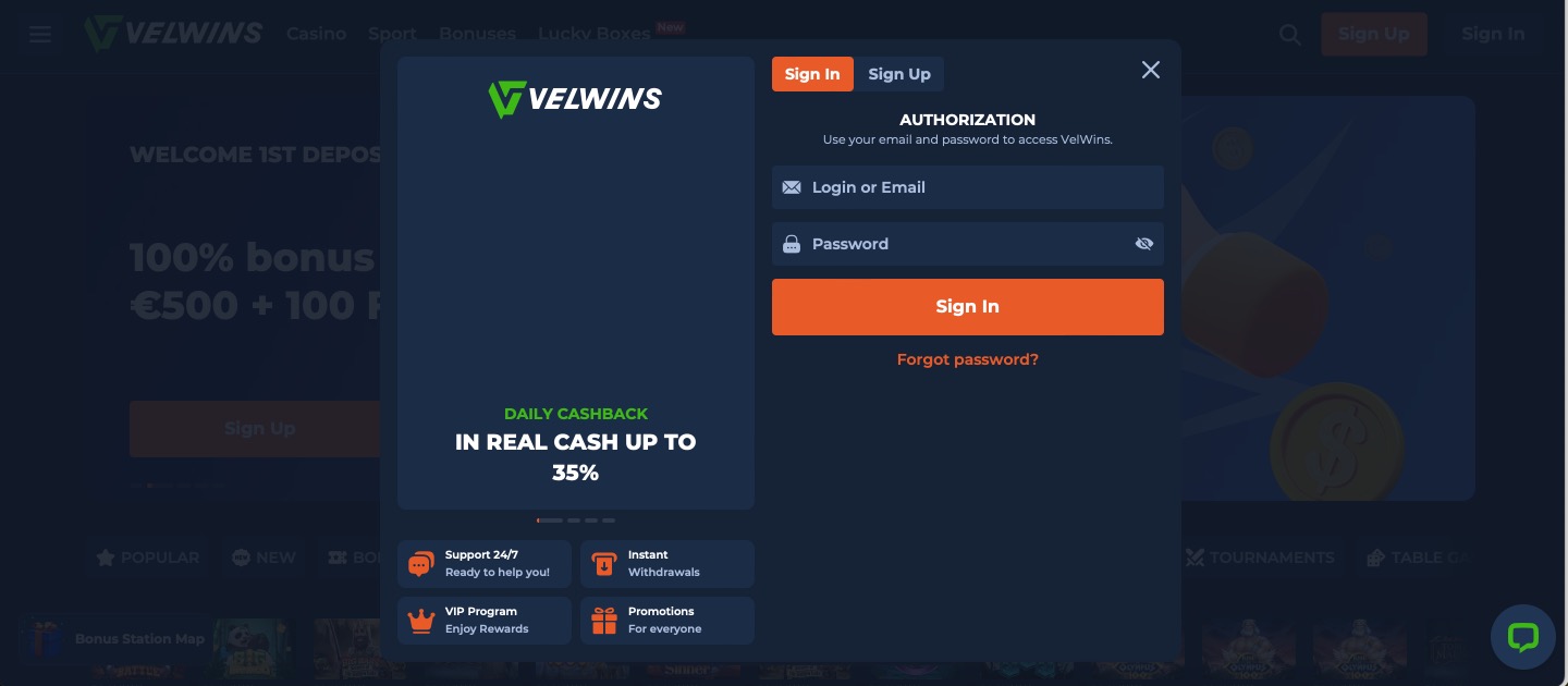 Velwins Casino Signup