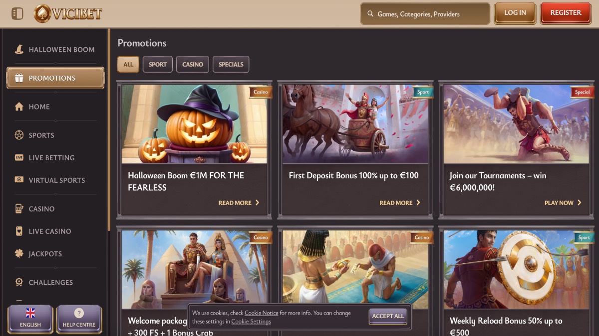 ViciBet Casino offers a diverse range of bonuses and promotions designed to appeal to both casino and sports enthusiasts. New players are welcomed with a generous welcome bonus package of up to 325% on deposits, accompanied by 300 free spins and a unique bonus crab, providing a strong start to their gaming journey. The first deposit bonus offers 100% up to 100 EUR, giving newcomers an additional boost. For ongoing engagement, ViciBet provides a Live Cashback Bonus of 25% up to 200 EUR, a weekly reload bonus of 50% up to 500 EUR, and a weekly cashback of 15% up to 3,000 EUR. Weekend players can benefit from a weekend reload bonus of up to 700 EUR plus 50 free spins, while a cashback bonus of 10% up to 500 EUR adds extra protection for losses. Sports bettors are not left out, with features such as early payout when two goals ahead, boosted odds, and enhanced winnings, along with a weekly reload of 50 free spins. Additionally, an accumulator boost of up to 100% ensures that regular players can maximize their potential returns.