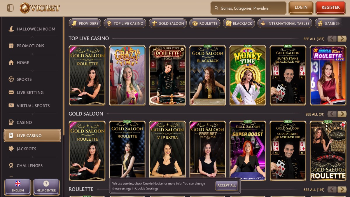 Live casino: Live casinoCasino games with live dealers streamed in real-time from authentic casino studios or casino floors, for a life-like, social casino experience in front of your screen.