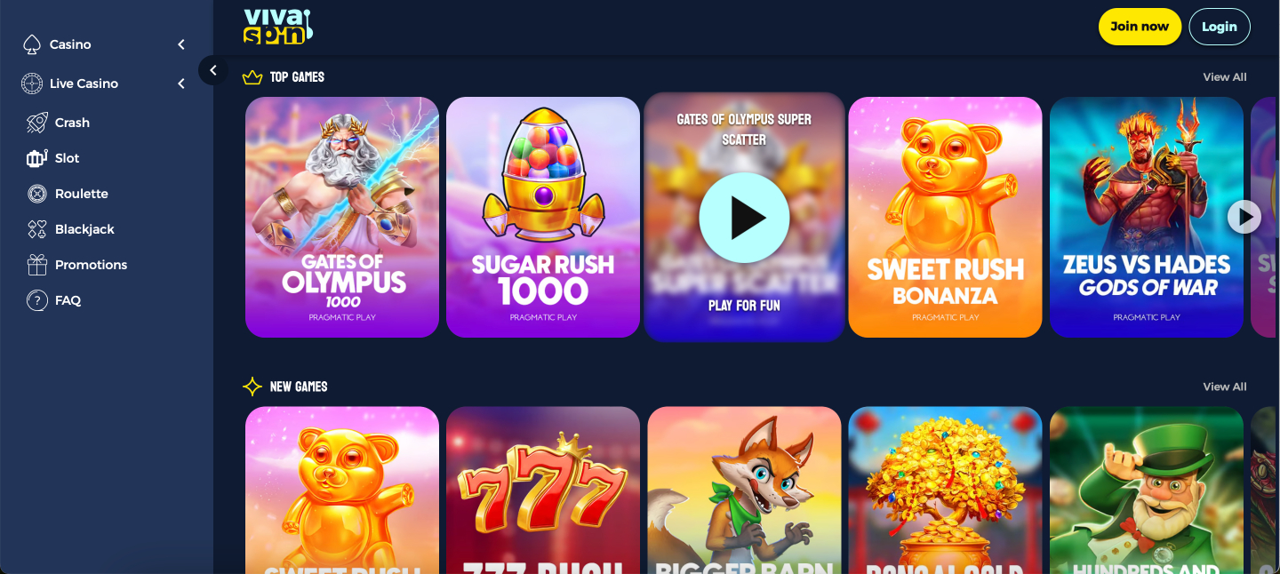 VivaSpin is a fresh entrant in the casino market, that prioritizes straightforward access to slots, table games, live tables, and crash options without much fuss in navigation. The welcome incentive and recurring weekly draws keep things active for those who log in regularly, and the inclusion of cryptocurrencies alongside standard cards and e-wallets makes funding an account less of a hassle than at some older sites bogged down by outdated processors. That said, its youth shows in the lighter regulatory touch from the Anjouan authority, which doesn't inspire the same confidence as more established licenses, and while support responds promptly through chat, deeper issues sometimes loop back to generic FAQs. Overall, it suits players okay with a no-frills setup that rewards steady play, but I'd hold off on big commitments until it builds more substance through user stories and refined payout handling.