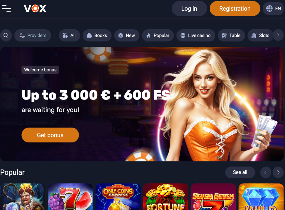 Vox Casino - Big slots, big bonuses, fast crypto action.