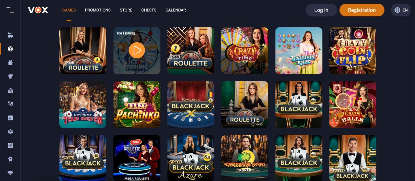 Vox Casino stocks over 6000 games with strong emphasis on slots alongside live dealer rooms and instant titles. Categories include Megaways, Hold & Link, classic fruit machines and high-volatility picks. Crash games and mining styles provide quick alternatives. Live section offers roulette, blackjack and interactive shows running continuously. New releases land regularly and appear highlighted in the lobby. Search and provider filters cut down lookup time significantly.