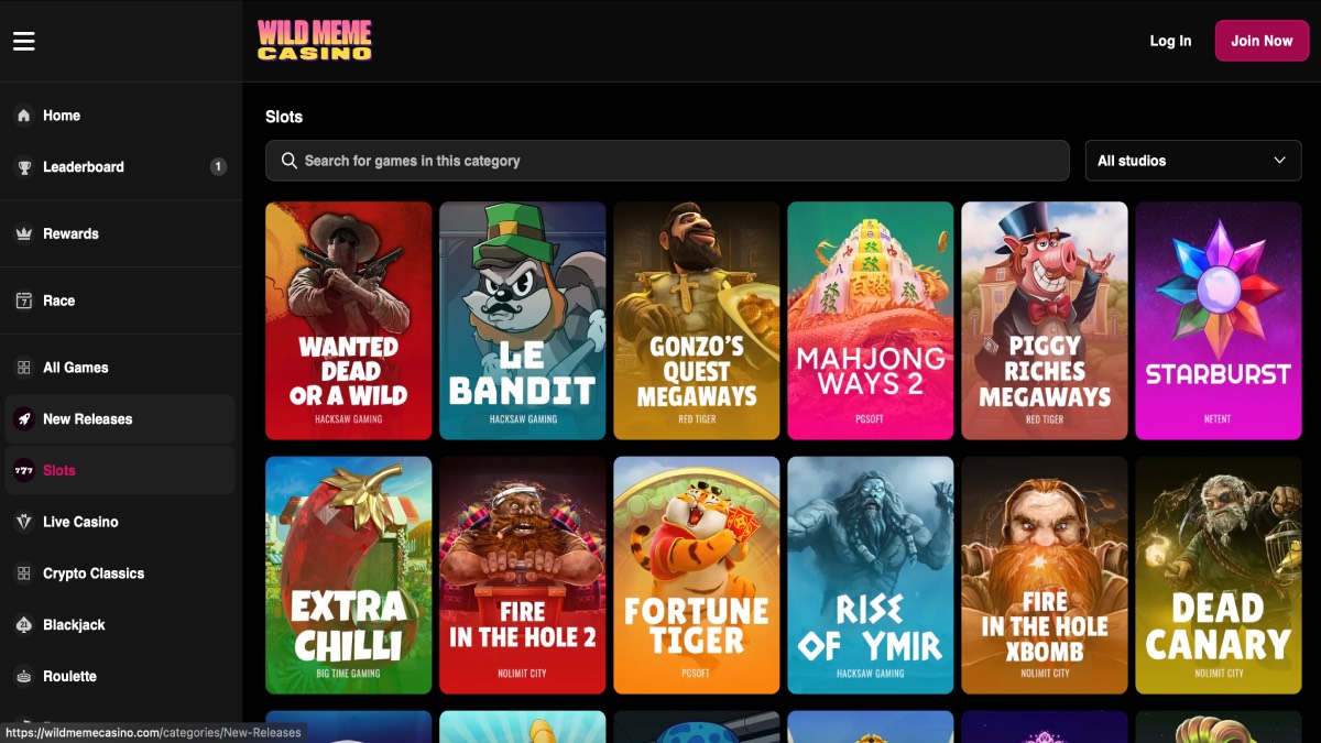 What games are available at Wild Meme Casino — slots, table games, or live casino?