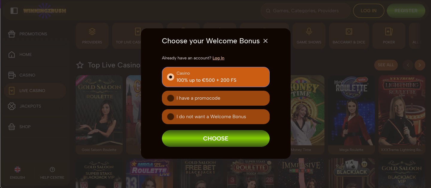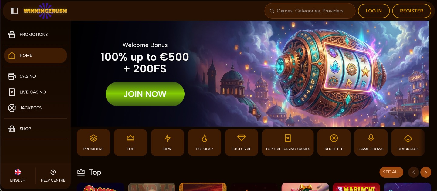 WinningzRush Casino covers over 10,000 titles in total, giving members plenty of choices in slots alongside live streams of classics. Game shows round out the live section. Responsible gaming tools sit directly in accounts for limit setting. The overall setup targets straightforward play without extra features like dedicated sports sections.