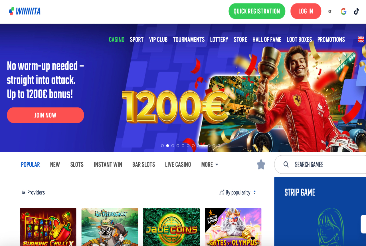 Winnita Casino combines a vast casino library with a full sportsbook in one account, offering over 5,000 games from providers like Pragmatic Play, Evolution, NetEnt, BGaming, and Hacksaw. Slots dominate with Megaways, Hold & Link, bonus buys, and high-RTP titles, while live dealer tables run roulette, blackjack, baccarat, and game shows nonstop. The clean interface works smoothly on desktop and mobile (with an Android app), and banking includes cards, e-wallets, and crypto. Promotions feature a welcome package up to €1,500 + 300 FS, weekly reloads, cashback, sports free bets, and tournaments, backed by a seven-tier loyalty program that i...mproves rewards as you climb from Newcomer to Super VIP. No public license is displayed, though SSL encryption and KYC verification are standard, along with responsible gaming tools.