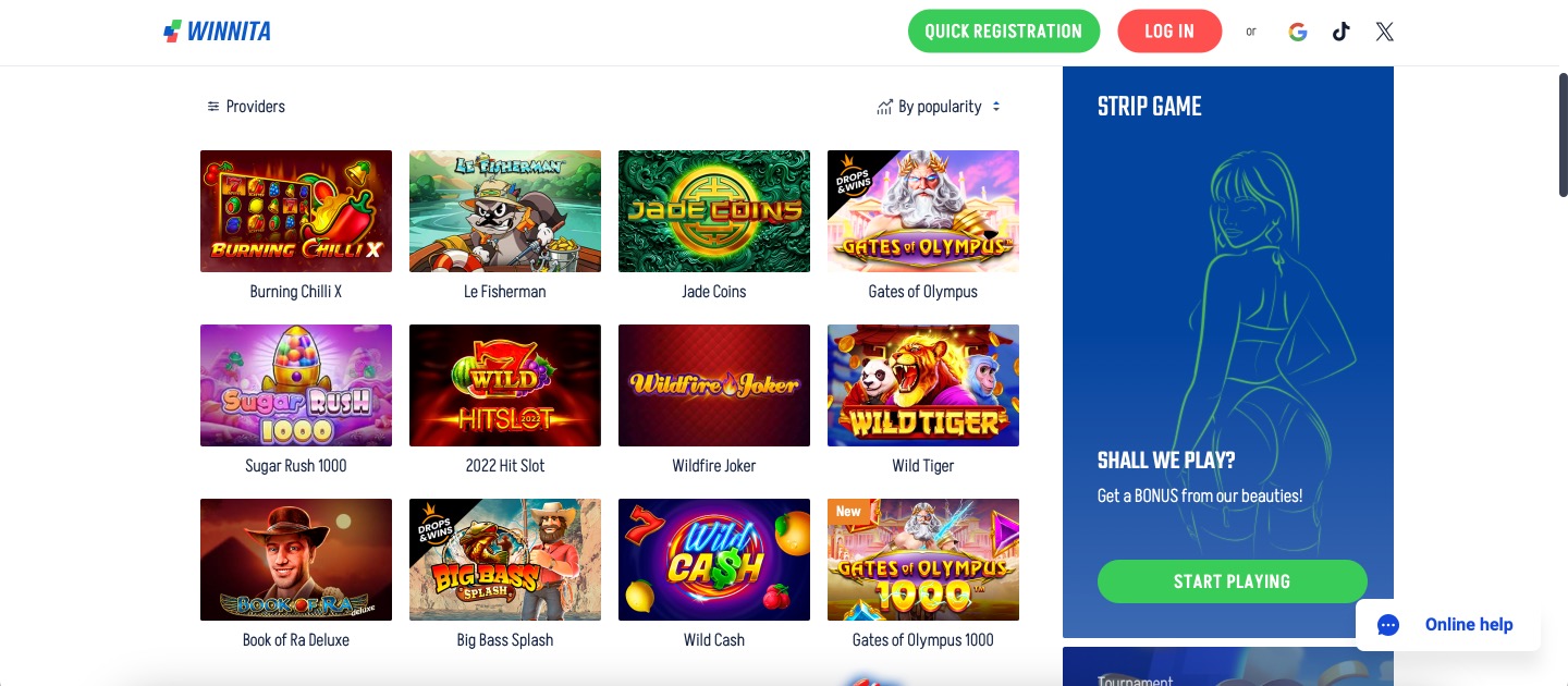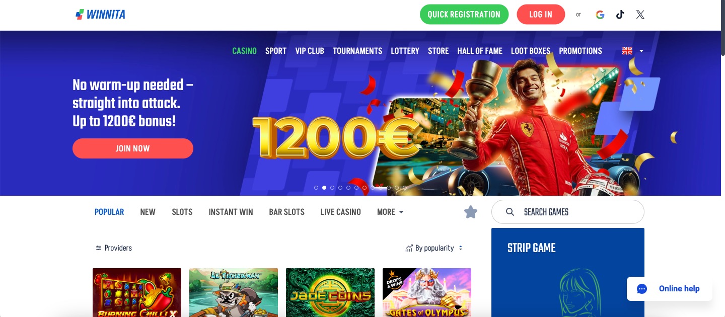 Winnita Casino - Big library. Fast action!