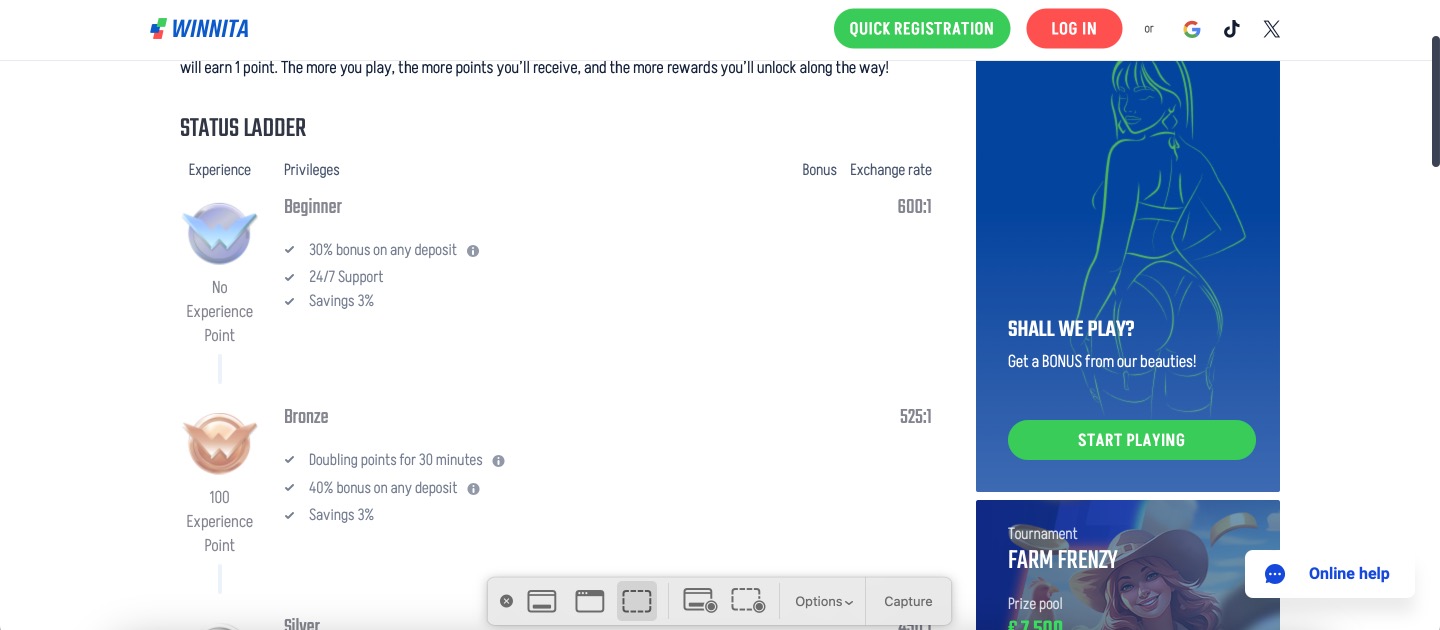 Winnita Casino Status Ladder