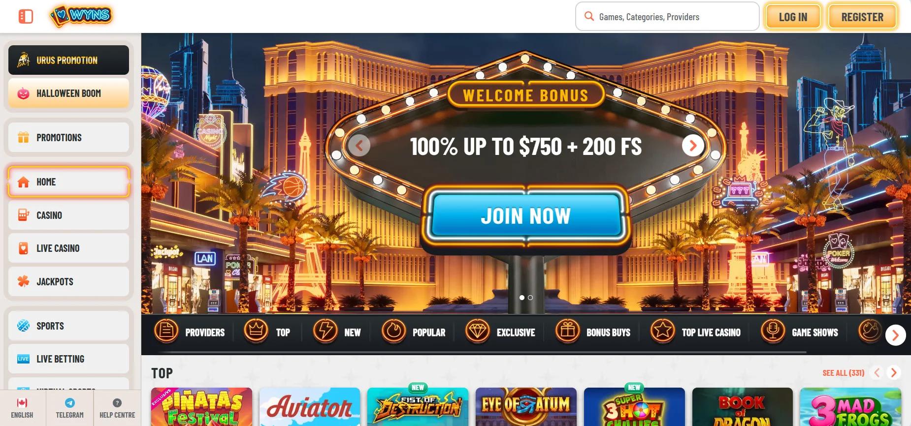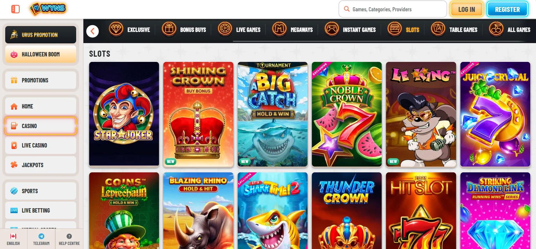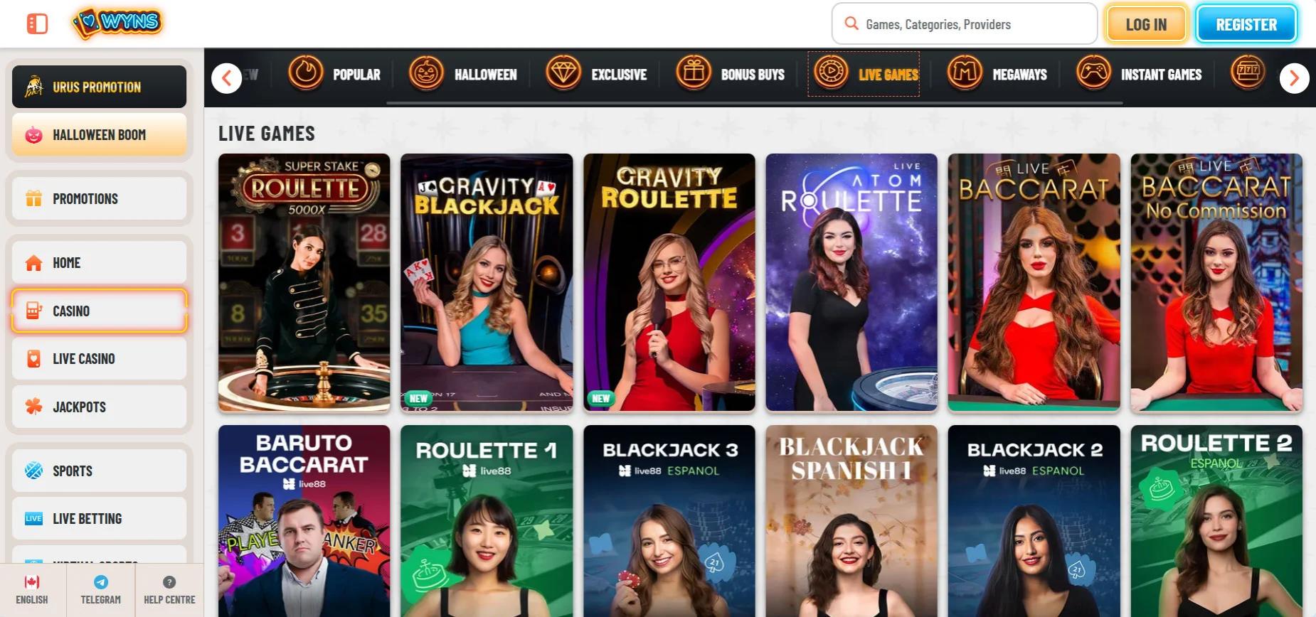 Wyns Casino stocks over 30,000 slots, varied table games, and 1,100+ live dealer options, plus a sportsbook. Coverage spans roulette, blackjack variants, and event betting, sourced from providers like Pragmatic Play, Evolution, and NetEnt. Filters assist in sorting by type or popularity.