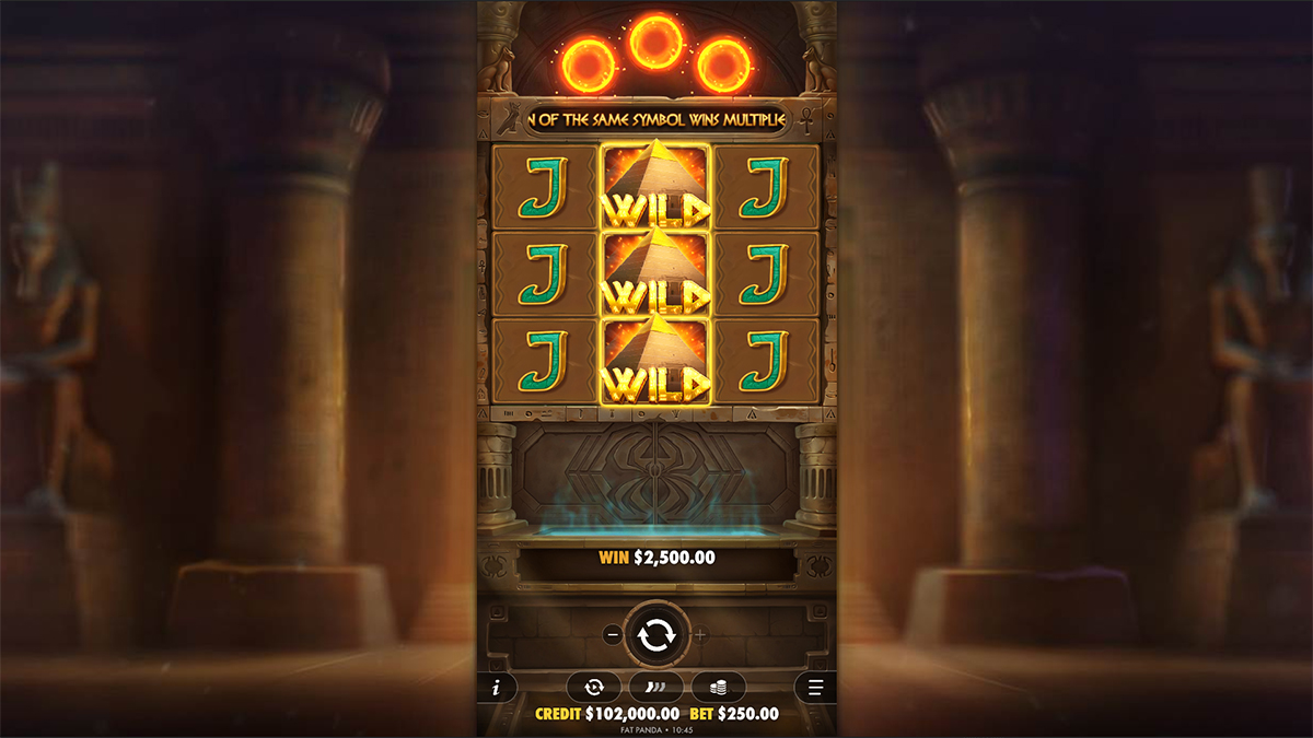 The gameplay of Code of Cairo is straightforward yet satisfying, built around its 3×3 grid and 5 paylines. Wins are achieved by landing three identical symbols on a payline, with stacked symbols and wilds significantly boosting the hit rate. What makes the game stand out is the steady pace of action, driven by frequent small to medium wins, combined with the occasional bonus round that injects excitement. The slot’s portrait-mode design also enhances its accessibility, making the experience smooth whether on desktop or mobile, while intuitive controls such as Autoplay and a 3-tiered pace controller allow players to customize their session length and intensity.